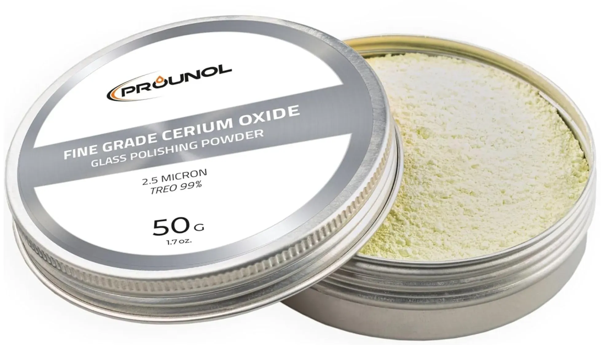 Kategorie: Reinigungsmittel - Prounol - GTIN:5907713351243 - KRATZER SCHNELL ENTFERNEN: Hohe Wassersuspension und schnelle Polierwirkung. Ceriumoxid ist das ideale Polierpulver zur Entfernung von Glaskratzern VIELSEITIG: Verwendung für die abschließende Politur von Unebenheiten, Abreibungen, leichten Kratzern, Kalkablagerungen und Klebstoffresten. BITTE BEACHTEN: Nicht geeignet für tiefe Kratzer (wenn Ihr Fingernagel in dem Kratzer steckenbleibt, ist er wahrscheinlich zu tief und Sie benötigen zunächst Sandpapier). Restauriert Fenster, Spiegel, Windschutzscheiben und sogar Autoscheinwerfer bis zu einem neuwertigen Zustand HöCHSTER INDUSTRIESTANDARD: Unser Ceriumoxid ist mit TREO 99% oder höher zertifiziert. Wir verwenden einen eigens entwickelten Herstellungsprozess mit Sieben in Laborqualität, um eine Partikelverteilung von 2,5 Mikron +/- 0,25 Mikron zu erreichen. Dies sorgt für den gleichbleibend besten Poliereffekt ohne überraschungen ANWENDUNG: Mischen Sie das Pulver gründlich mit erhitztem Wasser (30 C - 50 C). Wenn Sie eine schnell glättende, aggressive Paste benötigen, nehmen Sie nur wenig Wasser. Für die Endpolitur mit mehr Wasser mischen. Eine optimale Leistung wird erreicht, wenn die Arbeitstemperatur der Masse über 30 C gehalten wird. Die Paste auf ein Filztuch geben. Halten Sie den Filz während des Polierens feucht WäHLEN SIE IHRE GRöSSE: PROUNOL Ceroxid-Pulver ist erhältlich in den Größen 50g and 100g - 11,99 Euro bei Amazon Marketplace Automotive - gefunden ... Eine kleinere, aber hochwertige Option für optisches Polieren, die sich gut für präzise Arbeiten oder kleinere Projekte eignet. ![]() ![]() GLASS POLISH 50g Cerium Oxide, Ceroxid Feines Glaspolierpulver für Optisches Polieren, Hohe Qualität Glaspoliermittel, Verfeinerte Formel, TREO 95%, 2,5 Mikron, Weiß - GP90001