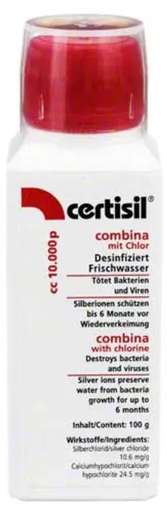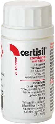 Certisil combina META PreisvergleichMit dem Meta-Preisvergleich suchen Sie gleichzeitig bei den großen Preisvergleich Portalen!Jetzt live Suche nach certisil combina starten! Certisil combina KaufberatungCertisil Combina ist ein Biozidmittel von Katadyn zur Desinfektion und Konservierung von klarem Trinkwasser in Tanks von Wohnmobilen, Booten, Caravans oder IBC-Containern, das Bakterien und Viren mit Chlor abtötet und bis zu 6 Monate mit Silberionen vor Wiederverkeimung schützt.[1][2][3][5][7] Wichtige Hinweise zur Anwendung und SicherheitBeachten Sie folgende Punkte für sichere und effektive Nutzung: