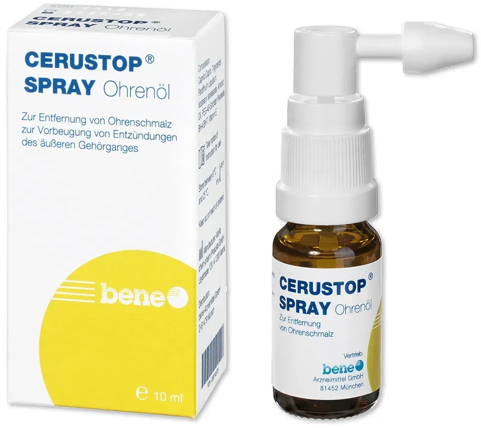 Dieses Angebot ist ein Beispiel für Angebote, die kürzlich auf dem eBay-Marktplatz in der Kategorie 260756 verfügbar waren. Bitte aktualisieren Sie die Suchergebnisse um aktuelle Angebote zu erhalten. Dieses Ohrenöl-Spray ist eine kostengünstige Option zur Ohrenpflege und zur Vorbeugung von Cerumenansammlungen. ![]() ![]() Bene Arzneimittel GmbH CERUSTOP Spray Ohrenöl 10 ml
