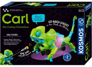 Zustand: Neu - Experimentierkästen - Kosmos Franckh-Kosmos Verlags-GmbH & Co. KG, Pfizerstrasse 5-7, 70184 Stuttgart, Deutschland - 621391 - EAN: 4002051621391 - Hier erwacht Carl, das Roboter-Chamäleon, zum Leben! Ohne Vorkenntnisse können Kinder seine Bewegungen und Verhalten selbst programmieren und steuern und erleben seine beeindruckenden Funktionen. In seinen drei Modi (Jäger, Haustier oder Coding) pirscht sich das Chamäleon an wie in der Natur, läuft und fängt sogar Beute mit der Zunge! Dank Licht- und Bewegungssensoren sowie leuchtendem LED-Körper tarnt sich das Chamäleon und passt seine Farbe dem Untergrund an. Die Anleitung erklärt den Aufbau des Roboters, zeigt, wie er mithilfe der Farbkarten programmiert wird und gibt faszinierende Infos zum Programmieren und Robotik. Dieser KOSMOS Experimentierkasten vermittelt Kindern ab acht Jahren erste Grundkenntnisse des Programmierens und sorgt für Spielspaß der ganz besonderen Art. - bei Amazon.de ![]() ![]() Carl - - Das Coding-Chamäleon