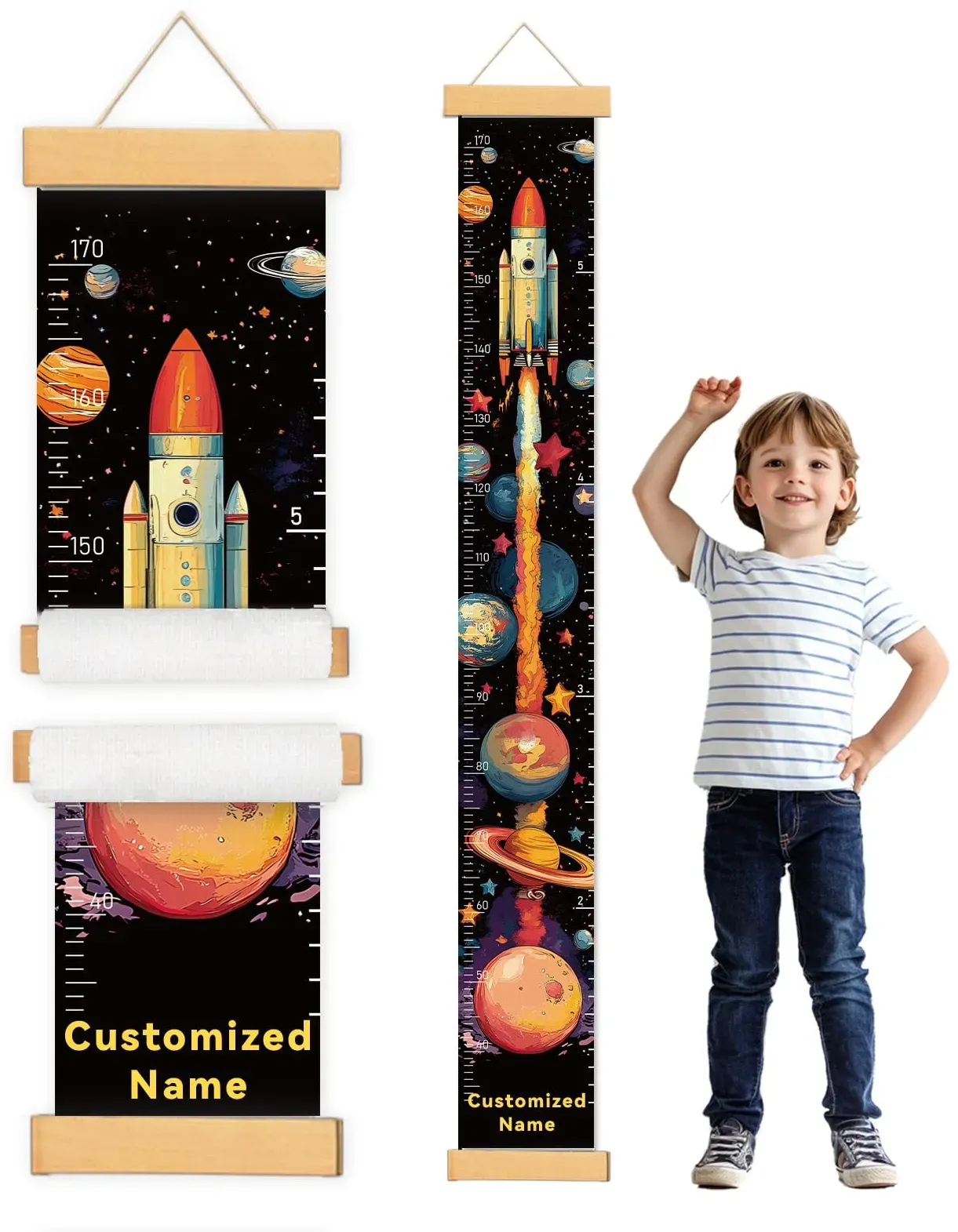 Verfügbarkeit: Gewöhnlich versandfertig in 2 bis 3 Tagen - Kategorie: Sonstige Kinderzimmermöbel - charmible - Messlatte Kinder Personalisiert Mit bezaubernden Giraffenmustern, die Jungen und Mädchen gleichermaßen ansprechen, fügt sich diese kind messlatte für die Wand nahtlos in jede Raumdekoration ein. Ob Kinderzimmer, Schlafzimmer, Innenwände, Fenster oder sogar Wohnzimmer unsere messlatten für baby- & kleinkinderzimmer wertet die ästhetik mühelos auf. Kinder-Messlineal Mit einer Länge von 154 cm und einer Breite von 28 cm. Dank der Doppelskala in Zoll und Zentimetern ist das Ablesen der Körpergröße Ihres Kindes so einfach und übersichtlich wie nie zuvor. Zusätzlich können Sie den Namen Ihres Babys personalisieren, um die Messlatte zu einer einzigartigen Dekoration für Ihr Baby zu machen. Produktmaterialien Hergestellt aus hochwertigem, reißfestem Canvas, ist diese Messlatte für Kinder nicht nur sicher und ungiftig, sondern auch wasserdicht. Sie können sicher sein, dass es seinen Charme und seine Funktionalität über Jahre hinweg behält und den täglichen Aktivitäten Ihres Kindes standhält. Gute Aufhängehinweise Wir empfehlen, die Messlatte für Kinder 38 cm über dem Boden aufzuhängen. So bleibt sie nicht nur sauber, sondern schützt die Messlatte auch vor versehentlichen Stößen und sorgt so für eine lange Lebensdauer. Zufriedenstellender Kundendienst Wir ren die Qualität unserer Messlatte mit einer 108%igen . Sollten Sie ... Für kleine Astronauten ist diese personalisierte Canvas-Messlatte mit Raketen-Motiv eine tolle Wahl. ![]() ![]() CHARMIBLE Personalisiert Messlatte Kinder für Baby- & Kleinkinderzimmer mit Namen, Abnehmbares Canvas-Messlineal für Baby-Messlatte für Schlafzimmer, Wanddekoration(Rakete)