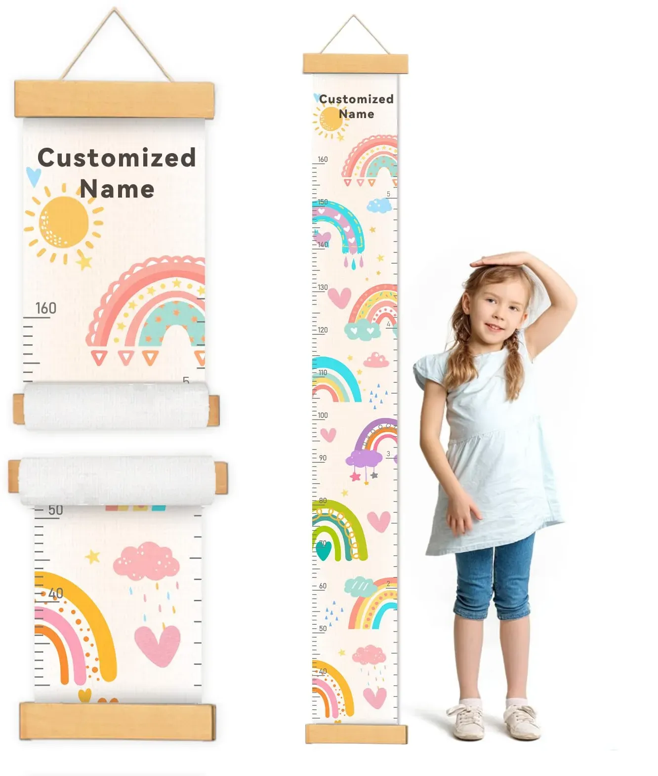 Verfügbarkeit: Gewöhnlich versandfertig in 2 bis 3 Tagen - Kategorie: Sonstige Kinderzimmermöbel - charmible - Messlatte Kinder Personalisiert Mit bezaubernden Regenbogenmuster, die Jungen und Mädchen gleichermaßen ansprechen, fügt sich diese kind messlatte für die Wand nahtlos in jede Raumdekoration ein. Ob Kinderzimmer, Schlafzimmer, Innenwände, Fenster oder sogar Wohnzimmer unsere messlatten für baby- & kleinkinderzimmer wertet die ästhetik mühelos auf. Kinder-Messlineal Mit einer Länge von 154 cm und einer Breite von 21 cm. Dank der Doppelskala in Zoll und Zentimetern ist das Ablesen der Körpergröße Ihres Kindes so einfach und übersichtlich wie nie zuvor. Zusätzlich können Sie den Namen Ihres Babys personalisieren, um die Messlatte zu einer einzigartigen Dekoration für Ihr Baby zu machen. Produktmaterialien Hergestellt aus hochwertigem, reißfestem Canvas, ist diese Messlatte für Kinder nicht nur sicher und ungiftig, sondern auch wasserdicht. Sie können sicher sein, dass es seinen Charme und seine Funktionalität über Jahre hinweg behält und den täglichen Aktivitäten Ihres Kindes standhält. Gute Aufhängehinweise Wir empfehlen, die Messlatte für Kinder 31 cm über dem Boden aufzuhängen. So bleibt sie nicht nur sauber, sondern schützt die Messlatte auch vor versehentlichen Stößen und sorgt so für eine lange Lebensdauer. Zufriedenstellender Kundendienst Wir ren die Qualität unserer Messlatte mit einer 101%igen . Sollten ... Die Giraffen-Messlatte aus Canvas ist eine niedliche und preiswerte Option, um das Wachstum des Kindes zu verfolgen. ![]() ![]() CHARMIBLE Personalisiert Messlatte Kinder für Baby- & Kleinkinderzimmer mit Namen, Abnehmbares Canvas-Messlineal für Baby-Messlatte für Schlafzimmer, Wanddekoration(Giraffe)