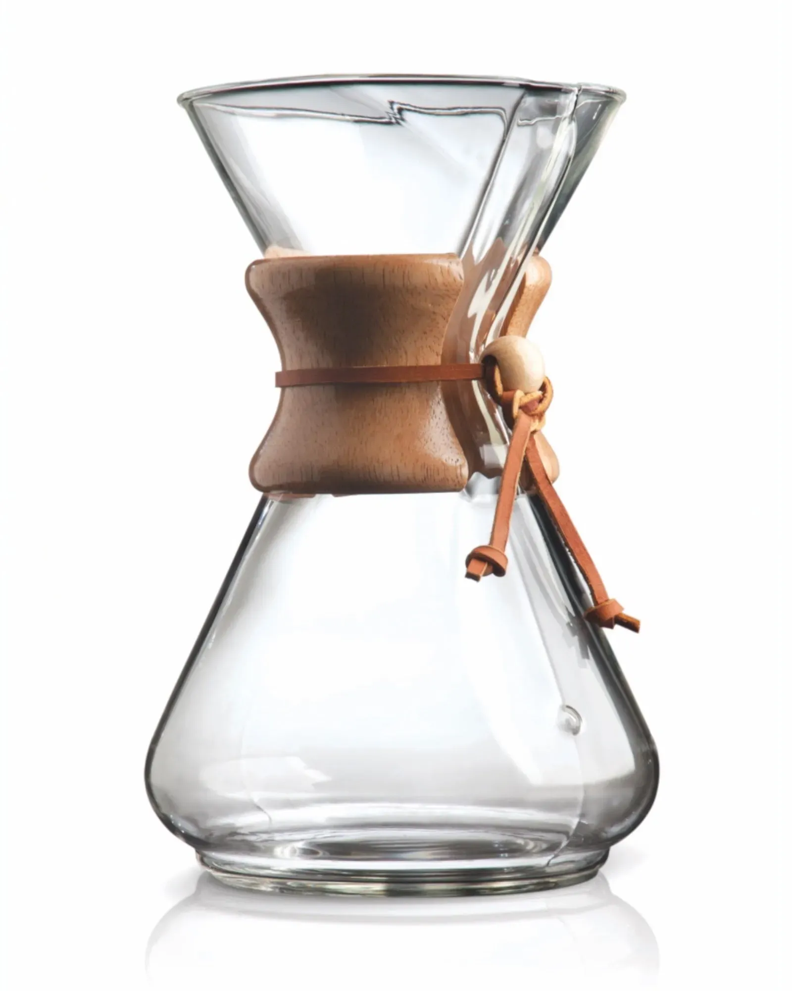 Kategorie: Thermoskannen - Chemex - GTIN:0642008784218 - Für wunderbar aromatischen Filterkaffee Filterkaffeezubereiter und Dekantiergefäß zugleich Liegt durch den wärme-isolierten Holzgriff bequem in der Hand Ausgussrinne erlaubt tropfengenaues Einschenken Als eines der 100 am schönsten designten Objekte im Museum of Modern Art in New York ausgestellt - 61,04 Euro bei Amazon Marketplace Kitchen - gefunden von billiger.de Diese Chemex Kaffeekaraffe mit Holzhals für 6 Tassen ist ein zeitloses Design, das Funktionalität und Ästhetik vereint. ![]() ![]() Chemex Kaffeekaraffee mit Holzhals - 6 Tassen