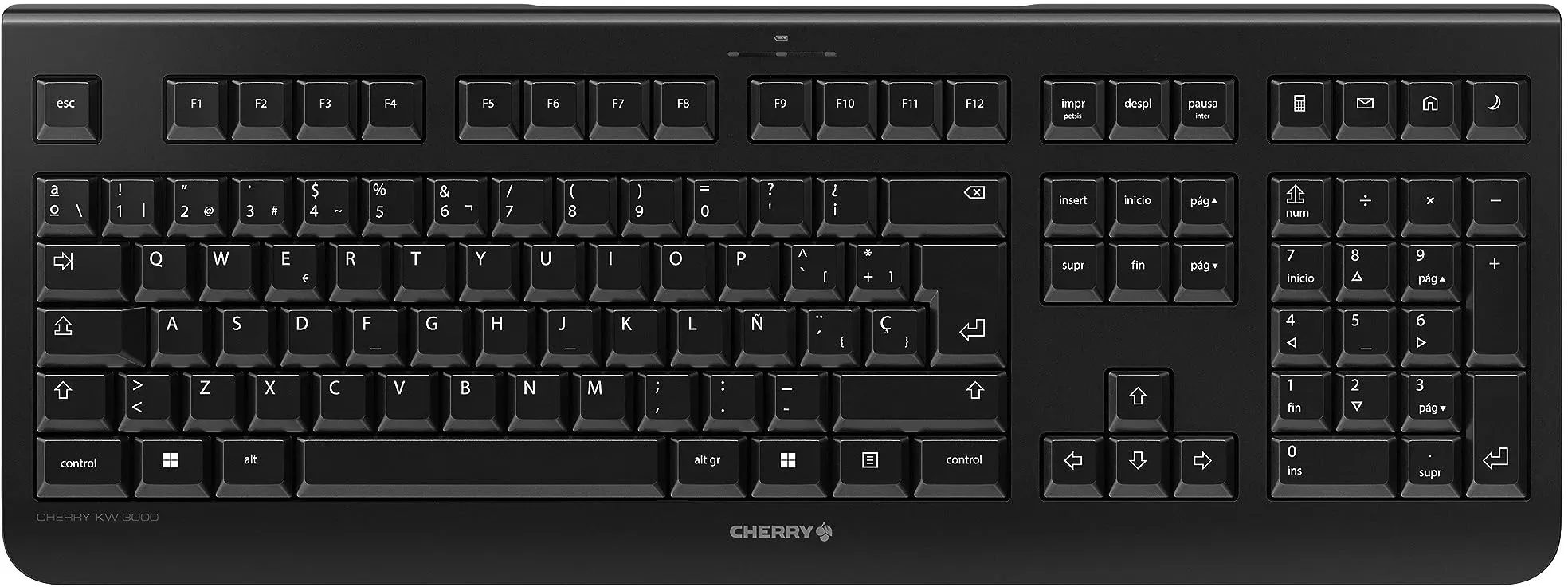 CHERRY - EAN: 4025112109850 - CHERRY KW 3000 Silent 2.4 GHz Spanisch schwarz (kabellos) - bei mindfactory.de - aus Yadore Produktdaten Dieses Angebot ist das günstigste für eine CHERRY KW 3000 mit spanischem Layout. ![]() ![]() Cherry KW 3000, Kabellose Tastatur mit Nummernblock, Spanisches Layout (QWERTY), 2,4 GHz Funk, Geräuscharme Tasten, Flaches Design, Batteriebetrieben, Schwarz