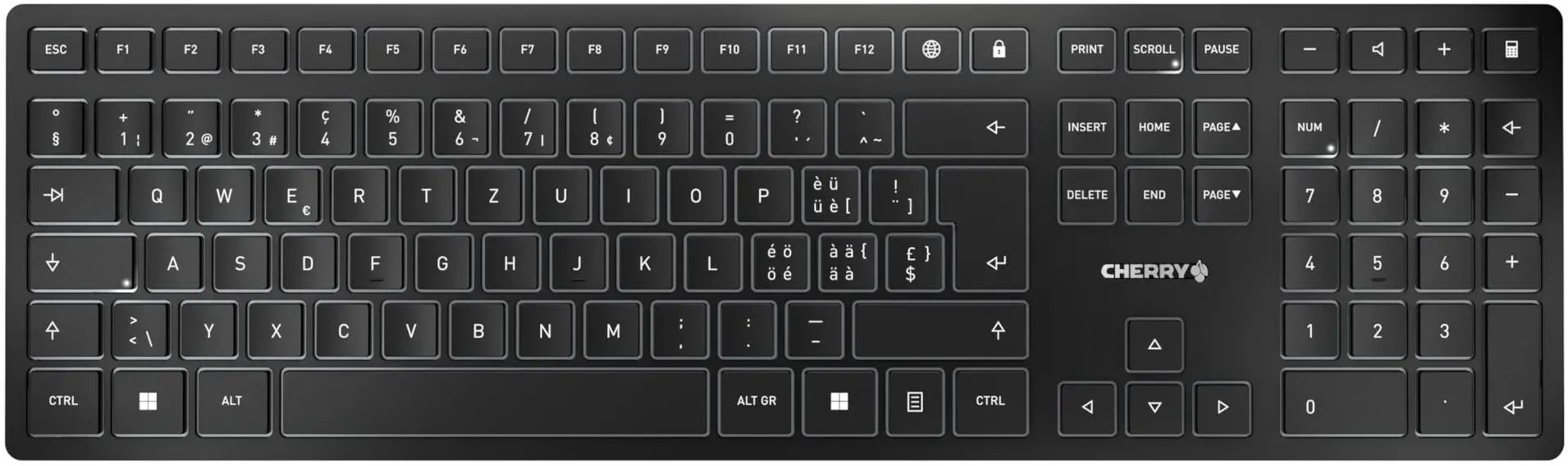 Zustand: Neu - Tastaturen - CHERRY Cherry Europe GmbH - JK-9100EU-2 - EAN: 4025112097171 - Wahlweise Verbindung über Bluetooth oder 2.4 GHz RF: Verbinden Sie das Wireless Keyboard über Bluetooth oder mit dem extra kleinen USB-Empfänger über Funk - beides mit AES-128 Verschlüsselung Wiederaufladbar: Der Akku hält wochenlang und ist auch während des Betriebs aufladbar, sodass Sie ungestört weiterarbeiten können. Um Akku zu sparen, schalten Sie die Tastatur einfach aus CHERRY SX-Scherentechnologie: Die Tastatur bietet Ihnen ein angenehmes und präzises Schreibgefühl, flache, leise Tasten und mehr als 10 Millionen Tastenbetätigungen ohne Qualitätseinbußen 6 Zusatztasten: Windows Lock, Browser öffnen, Leiser, Lauter, Stumm & Taschenrechner öffnen. Zusätzlich verfügt das Keyboard über Status-LEDs für die CAPS LOCK-, NUM- und SCROLL-Taste Maximale Stabilität: Dank eingebauter Metallplatte steht die Funktastatur sicher auf dem Schreibtisch. Der Neigungswinkel lässt sich mit der abnehmbaren Magnetleiste leicht anpassen - bei Amazon.de Mit 65.03 Euro ist diese Cherry KW 9100 Slim CH eine günstige Option für ein Schweizer Layout. ![]() ![]() Cherry KW 9100 Slim CH