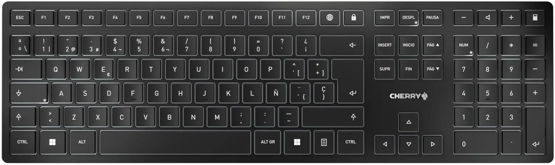 Zustand: Gebraucht - Tastaturen - CHERRY Cherry Europe GmbH - JK-9110DE-1 - EAN: 4025112099656 - Kabellose Design-Tastatur im Mac-Layout mit Nummernblock: Super flach mit blau schimmerndem Tastenrahmen und smarten technischen Features (Systemvoraussetzungen: MAC OS X 10.13 oder höher) Zugriff auf 13 beliebte Mac-Funktionen: Bildschirmhelligkeit, Mission Control, Spotlight Search, Lautstärke- und Mediensteuerung, PC sperren (ab MAC OS X 10.13), CD-Auswurf, Zoom ein/aus Wahlweise Verbindung über Bluetooth oder über 2,4 GHz Funk: Verbinden Sie 2 Geräte gleichzeitig und wechseln Sie nach Belieben hin und her - mit sicherer AES-128 Verschlüsselung Wiederaufladbar und langlebig: Fest verbaute aufladbare Lithium-Ionen-Batterie ermöglicht ungestörtes Arbeiten ohne Ladevorgang für mehrere Wochen. Aufladbar über USB-Kabel Lieferumfang: Drahtlose Tastatur, USB-Empfänger für Funkverbindung, Magnetleiste zum Anpassen des Neigungswinkels, USB-A auf USB-C Kabel für Ladevorgang, Bedienungsanleitung - 1 Händler im amazon.de Marketplace Mit 60.76 Euro ist diese schwarze CHERRY KW 9100 Slim mit deutschem Layout ein sehr preiswertes Angebot für eine Standard-Tastatur. ![]() CHERRY KW 9100 Slim (DE, Kabellos), Tastatur, Schwarz
