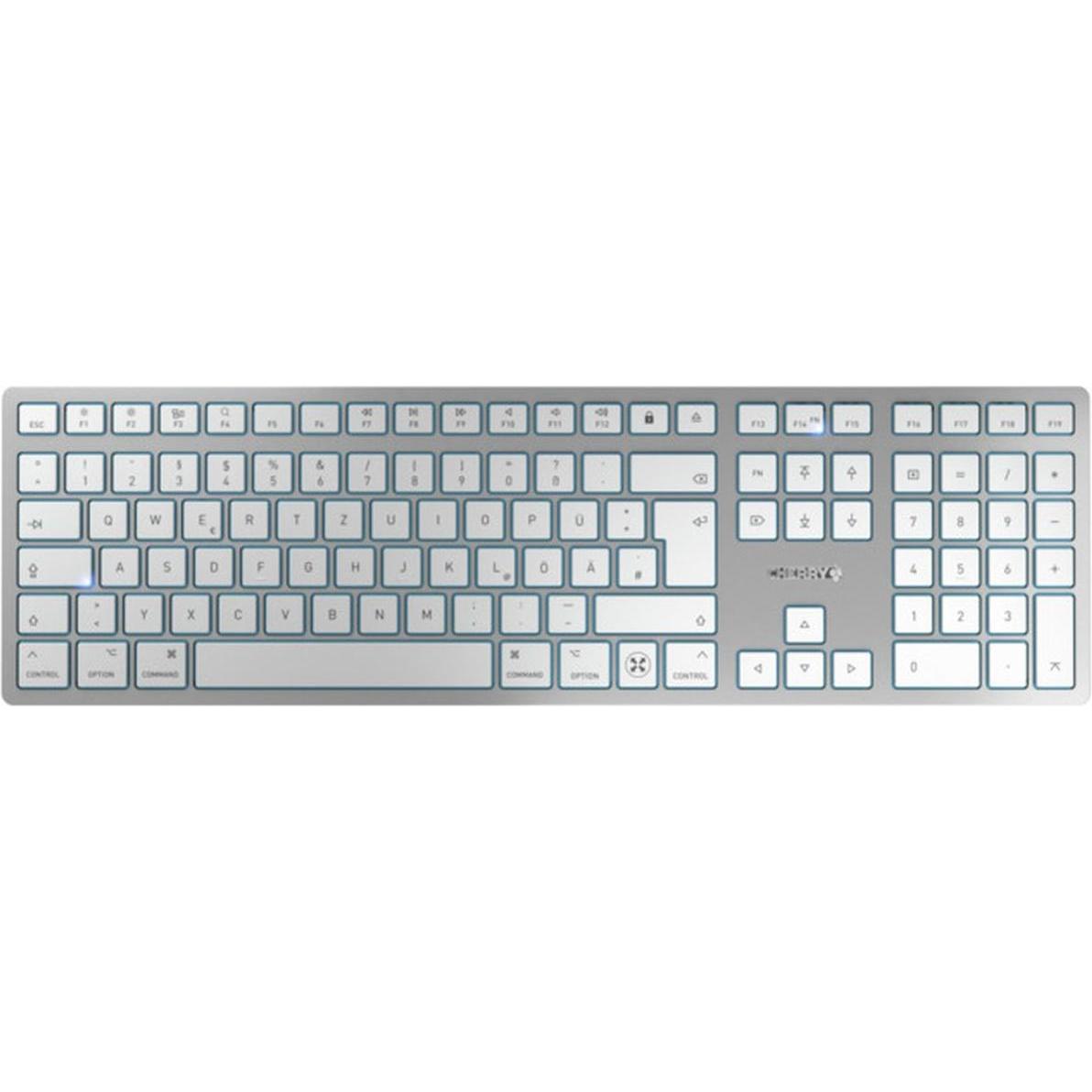 Auf Lager Versand durch AmazonCHERRY KW 9100 SLIM FOR MAC, kabellose Mac-Tastatur, Deutsches Layout (QWERTZ), Bluetooth oder 2,4 GHz Funk, Flache Tasten, Wiederaufladbar, Weiß-Silber