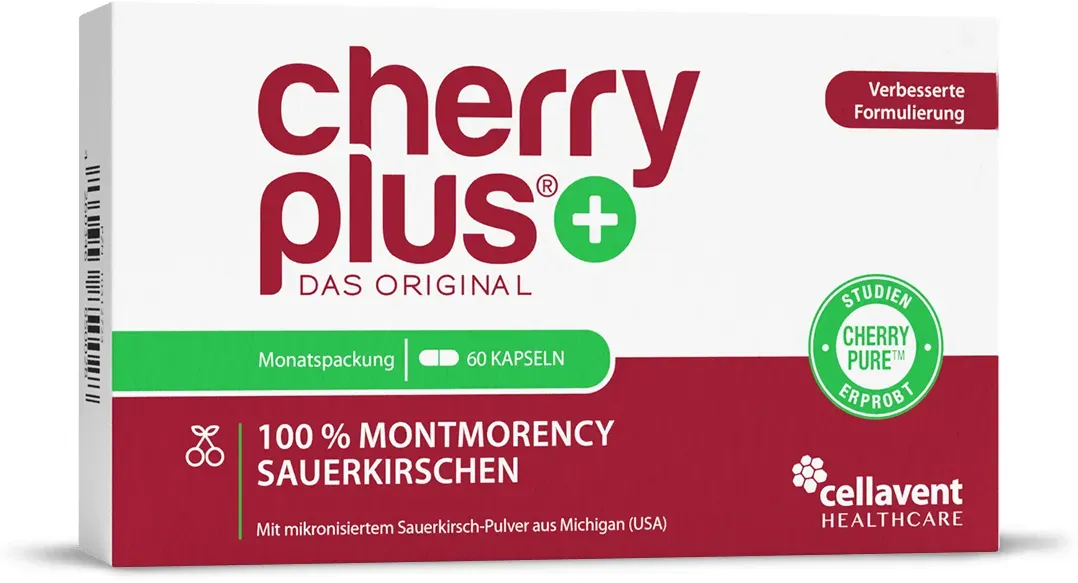 Zustand: Neu - 49,98 € / l - Kirsche Fruchtextrakt aus Kirschen - Cherry Plus-Das Original Cellavent Healthcare GmbH - 14178747 - EAN: 4260346850011 - FÜR DEINE GESUNDHEIT - Montmorency-Sauerkirschen enthalten von Natur aus wertvolle sekundäre Pflanzenstoffe (Anthocyane, Flavonoide, Polyphenole), Antioxidantien & Melatonin. Cherry PLUS ist das am stärksten dosierte Montmorency-Sauerkirsch-Konzentrat und Marktführer seit über 1 n. WAS PROFIS NACH BELASTUNG TRINKEN - Cherry PLUS Montmorency Sauerkirsch Konzentrat ist die erste Wahl von vielen Sportlern aus Radsport, Leichtathletik oder Fußball für optimale Regeneration. HÖCHSTKONZENTRIERT FÜR BESTE ERGEBNISSE - 1.450 Sauerkirschen pro Flasche (500 ml); 90 Sauerkirschen pro Tagesdosis. In Apotheken-Qualität, Kaltabfüllung, keine Erhitzung in der Flasche. GANZHEITLICH STARK - Nur echte, sortenreine US-Montmorency-Sauerkirschen aus Michigan (USA), der Heimatregion der Sauerkirsche. Erkennbar an der natürlichen Farbe. Strenge Qualitätsprüfung jeder Ernte durch unabhängige Labore in Deutschland. OHNE ZUSÄTZE - Cherry PLUS Montmorency-Sauerkirsch-Konzentrat ist vegan, gluten- & laktosefrei sowie frei von künstlichem Zucker, Konservierungs-, Farb- und Aromastoffen. - Verkäufer: Cellavent Healthcare GmbH im amazon.de Marketplace Diese Kapseln sind besonders stark dosiert (75:1 Extrakt) und enthalten 43 mg Polyphenole pro Tag. ![]() ![]()