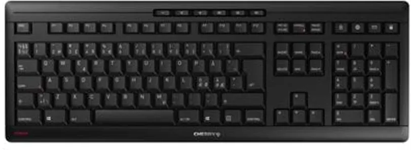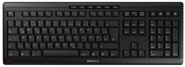 Kategorie: Tastaturen - Cherry - GTIN:4025112096969 - Hochwertige Funktastatur mit Nummernblock: Kabellos, zuverlässig und flüsterleise - ausgezeichnet mit dem Umweltzeichen Blauer Engel sowie dem GS-Siegel Geprüfte Sicherheit Plug & Play: Einfach per USB-Dongle über 2,4 GHz Funk verbinden und das Keyboard funktioniert ohne Kabel innerhalb einer Reichweite von 10 Metern (mit sicherer AES-128 Verschlüsselung) Schneller tippen und mehr schaffen: CHERRY SX-Scherentechnologie sorgt für einen präzisen Druckpunkt und ein optimales Schreibgefühl auf flachen Tasten. Perfekt für Vielschreiber Rutschfest und stabil: 2 Ausklappfüße zur Höhenverstellung, 8 Gummifüße sowie eine integrierte Metallplatte verleihen der flachen Tastatur Stabilität und verhindern, dass irgendetwas verrutscht Praktisch: Tastatur verfügt über 10 Zusatztasten sowie integrierte Status-LEDs für CAPS LOCK-, NUM- und SCROLL-Taste, die niedrigen Batteriestand anzeigen (Batterielaufzeit bis zu 36 Monate) - 53,08 Euro bei Amazon Marketplace CE - gefunden von billiger.de Ein Standardmodell der Cherry Stream Keyboard Wireless, das eine gute Basisoption darstellt. ![]() ![]() Cherry STREAM KEYBOARD WIRELESS - Tastatur - kabellos
