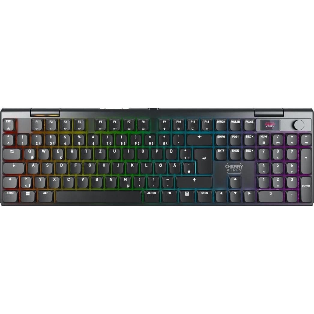 Kategorie: Tastaturen - Cherry - GTIN:4025112119491 - CHERRY XTRFY MX 10.1 Wireless. Tastatur Formfaktor: Volle Größe (100%). Tastatur-Stil: Gerade. übertragungstechnik: Verkabelt & Kabellos, Geräteschnittstelle: USB + RF Wireless + Bluetooth, Tastatur-Switch: Mechanischer Switch, Tastaturaufbau: QWERTZ, Tastatur - Tastenanzahl: 105. Typ der Hintergrundbeleuchtung: RGB-LED. Kabellänge: 1,8 m. Empfohlene Nutzung: Gaming. Produktfarbe: Schwarz - 220,89 Euro bei Smartkram - gefunden von billiger.de ![]() ![]() Cherry XTRFY MX 10.1 WIRELESS - Low-Profile Gaming-Keyboard im schlanken Aluminium-Design (G8A-25100HJADE-2)