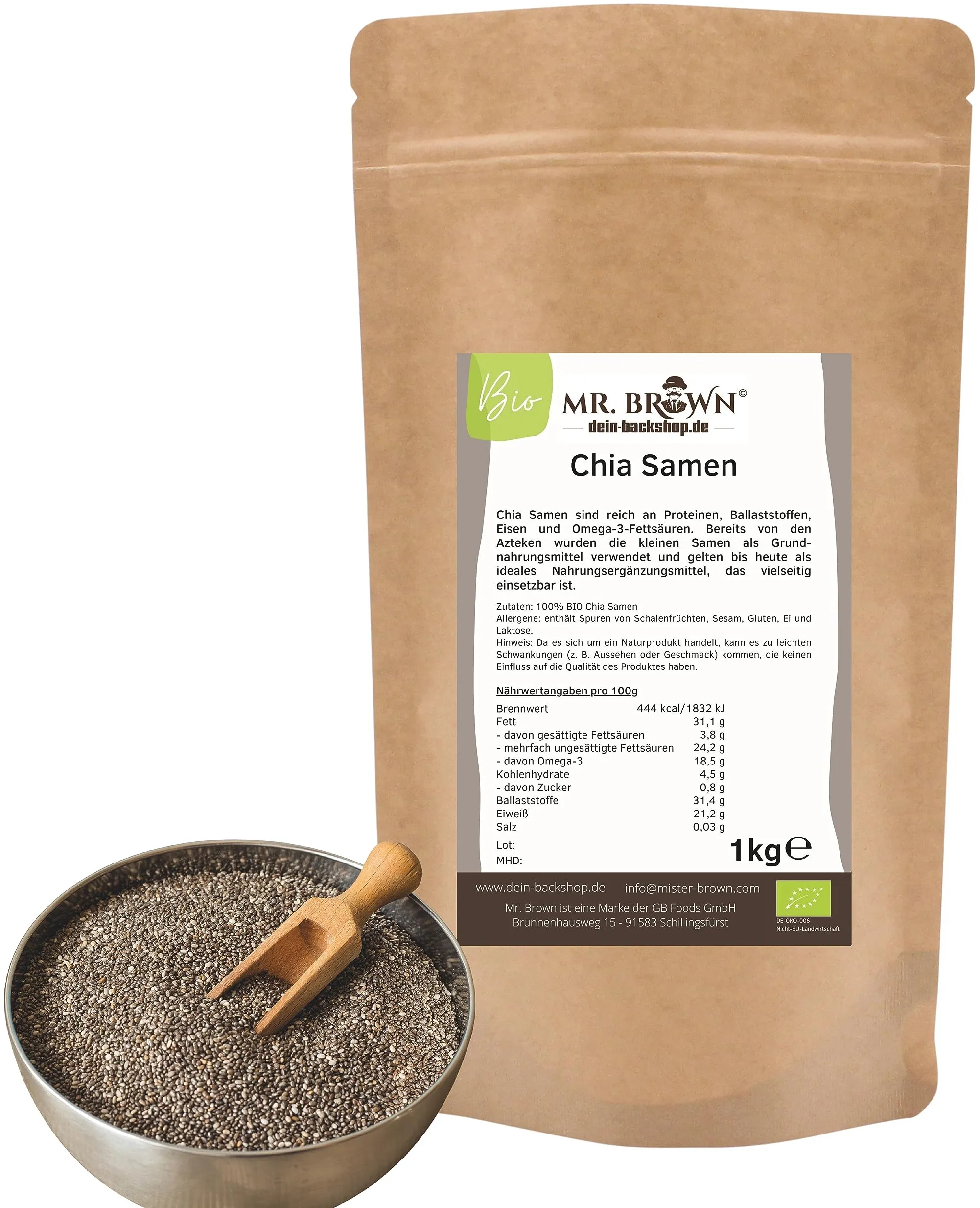 Zustand: Neu - 8,99 € / kg - Chia Samen - Kuchnia Zdrowia INSPORT Nutrition - - EAN: 5906746041831 - 🌿 100€¯% NATÜRLICHE CHIA SAMEN - Unsere Chia Samen von KUCHNIA ZDROWIA bestehen zu 100€¯% aus reinen Salvia-Hispanica-Samen. Ohne Zusatzstoffe, ohne Konservierungsmittel - einfach purer Naturgenuss für eine bewusste Ernährung. 💪 REICHHALTIG AN BALLASTSTOFFEN UND PROTEINEN - Mit über 34€¯% Ballaststoffen und rund 16€¯% pflanzlichem Eiweiß unterstützen unsere Chia Samen deine Verdauung und Muskelregeneration auf natürliche Weise. Ideal für aktive Menschen und Sportbegeisterte. 🧠QUELLE VON OMEGA-3-FETTSÄUREN - Chia Samen liefern wertvolle Omega-3-Fettsäuren, die zur Unterstützung der Herzfunktion und Gehirngesundheit beitragen können. Besonders wichtig bei vegetarischer oder veganer Ernährung. 🥣 VIELSEITIGE ANWENDUNG IN DER KÜCHE - Perfekt für Müsli, Joghurt, Smoothies oder Backwaren. Du kannst die Samen roh genießen oder einweichen - sie passen zu süßen und herzhaften Gerichten gleichermaßen. 🌱 FÜR VEGANE UND BEWUSSTE ERNÄHRUNG GEEIGNET - Unsere Chia Samen sind eine natürliche Bereicherung für alle, die Wert auf pflanzliche Nährstoffe legen. Einfach in den Alltag integrieren und von ihren zahlreichen Vorteilen profitieren. - Verkäufer: NUTRINER im amazon.de Marketplace Mr. Brown bietet hier für 9.95 Euro schwarze Chiasamen in Rohkostqualität in einem wiederverschließbaren Beutel an, was praktisch für die Lagerung ist. ![]() ![]() Mr. Brown 1kg Chia Samen, Chiasamen, schwarz, Rohkost, wiederverschließbarer Beutel