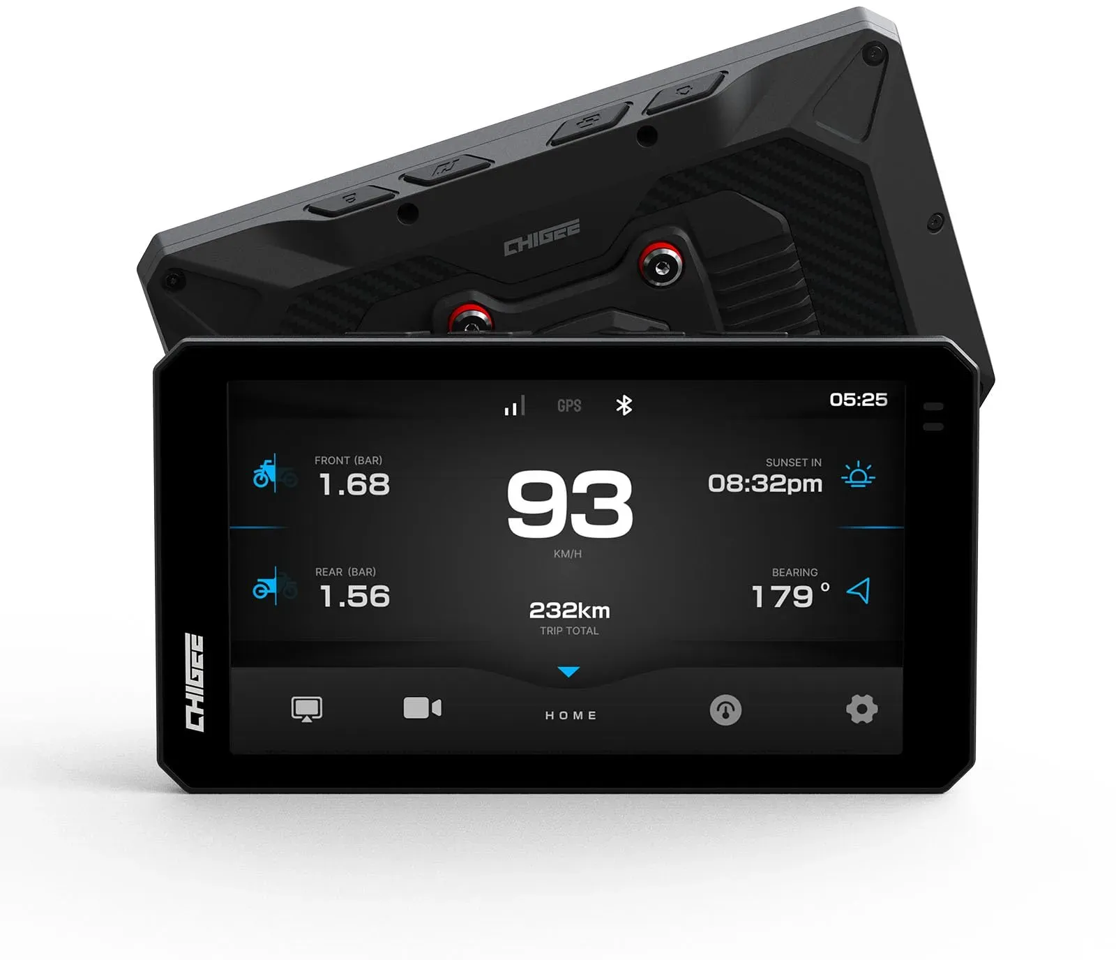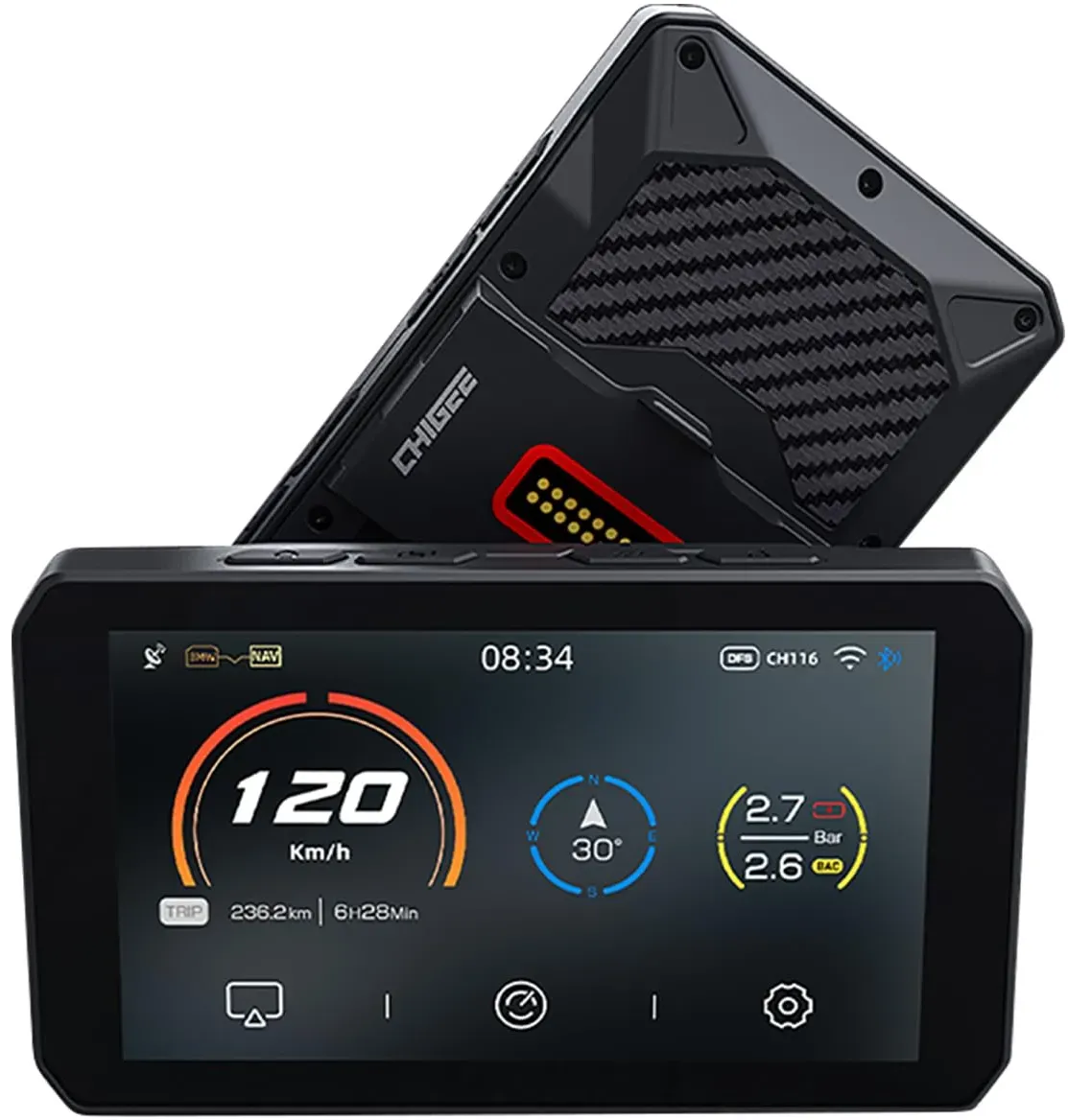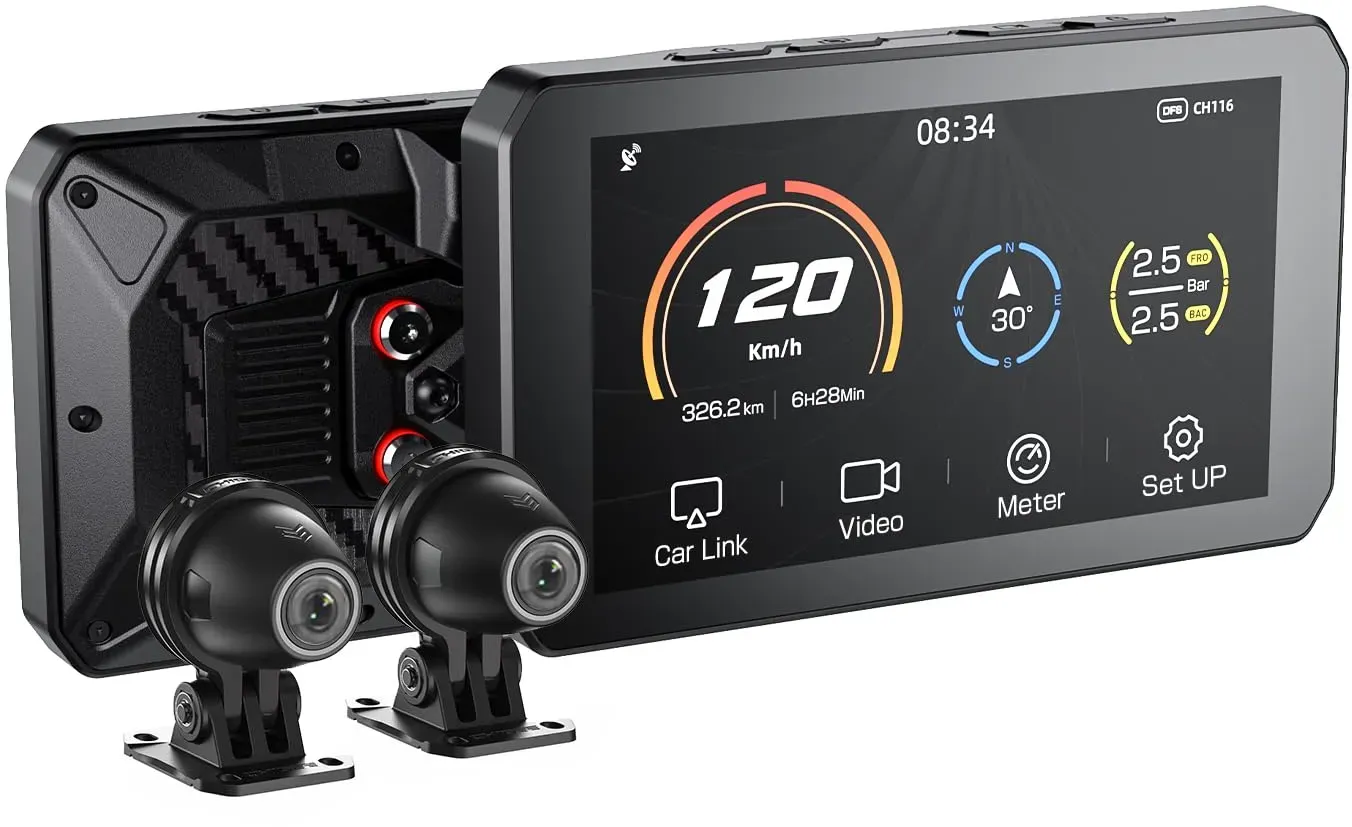 Kategorie: Navigationssysteme - chigee - Heads-up: The CHIGEE AIO-6 series comes with a pre-applied HD soft film. If scratches appear on the surface, you can peel it off to reveal a brand-new screen (Please note: this is not the default black protective film applied during factory shipping). If you wish to apply a dedicated tempered glass screen protector, be sure to remove this pre-applied soft film first for optimal adhesion. Seamless BMW Motorcycle Integration Fully compatible with BMW motorcycles, AIO-6 supports the OEM Wonder Wheel for easy control of navigation, calls, and settings. It syncs speed, tire pressure, and more to a dedicated dashboard. Quick-mount base allows 3-second install/removal safe, native, and intuitive riding. Smart Display with CarPlay & Android Auto Enjoy seamless connectivity with built-in CarPlay and Android Auto. Access apps, navigation, music, and calls directly from the screen. Stay focused on the road while easily controlling your ride whether you use iPhone or Android, it s smarter and safer riding, every time. IPX9 Waterproof & Anti-Theft Protection Ride confidently in any weather with upgraded IPX9 waterproofing. Resistant to dust, rain, and high-pressure water jets, AIO-6 MAX ensures top performance in harsh environments. Built tough for stable use in storms, mud, or rugged terrain your device stays protected, always. Modular 1080P Camera Ride Your Way Chigee AIO-6 Max gives you total freedom with a detachable 1080P camera. Install as ... ![]() ![]() chigee AIO-5 Lite Motorcycle Carplay Android Auto GPS Navigation System, BSD, STARVIS HDR 5" LCD, 60FPS,5G Wi-Fi BT, IP67 Waterproof, Support Siri Google Assistant, 24H Parking Mode, Dedicated App