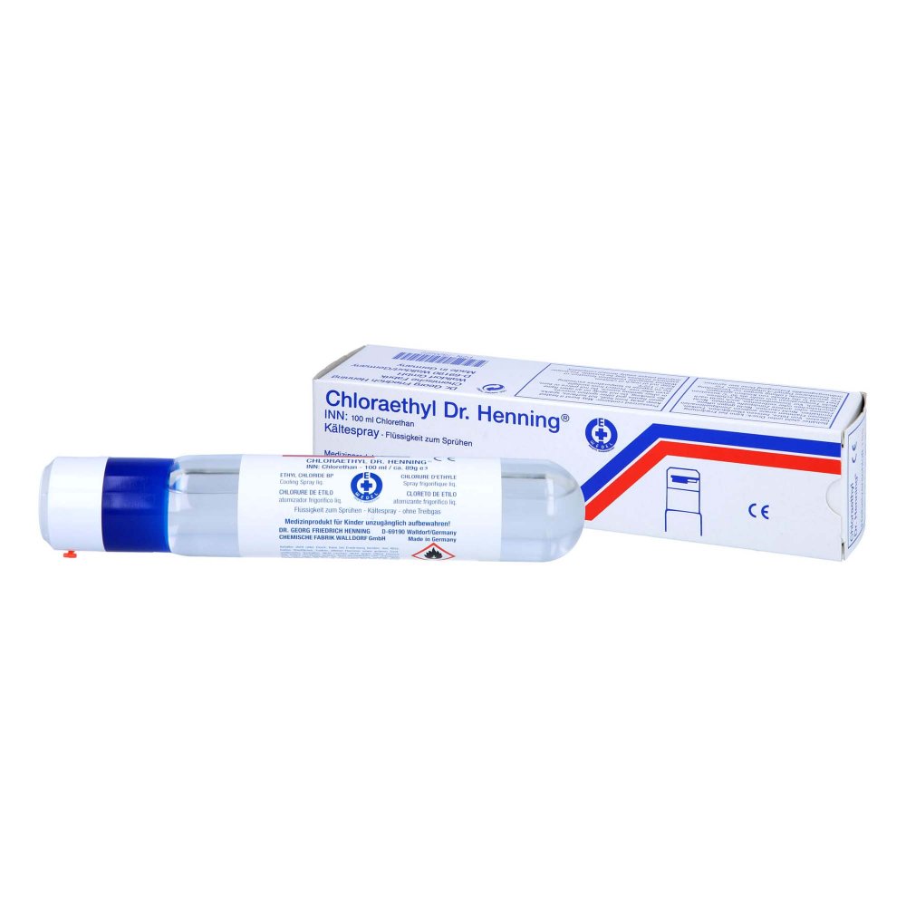 53,80 €/l - Kategorie: Arzneimittel - Dr.Georg Friedr.Henning ch.Fab.GmbH - GTIN:4150073202224 - PZN:07320222 - KältesprayFlüssigkeit zum Einsprühen. Mit Hebelverschluss. - 5,38 Euro bei medpex.de - gefunden von billiger.de ![]() ![]() Dr. Georg Friedrich Henning Chemische Fabrik GmbH CHLORAETHYL Dr. Henning TSS Spray 100 ml