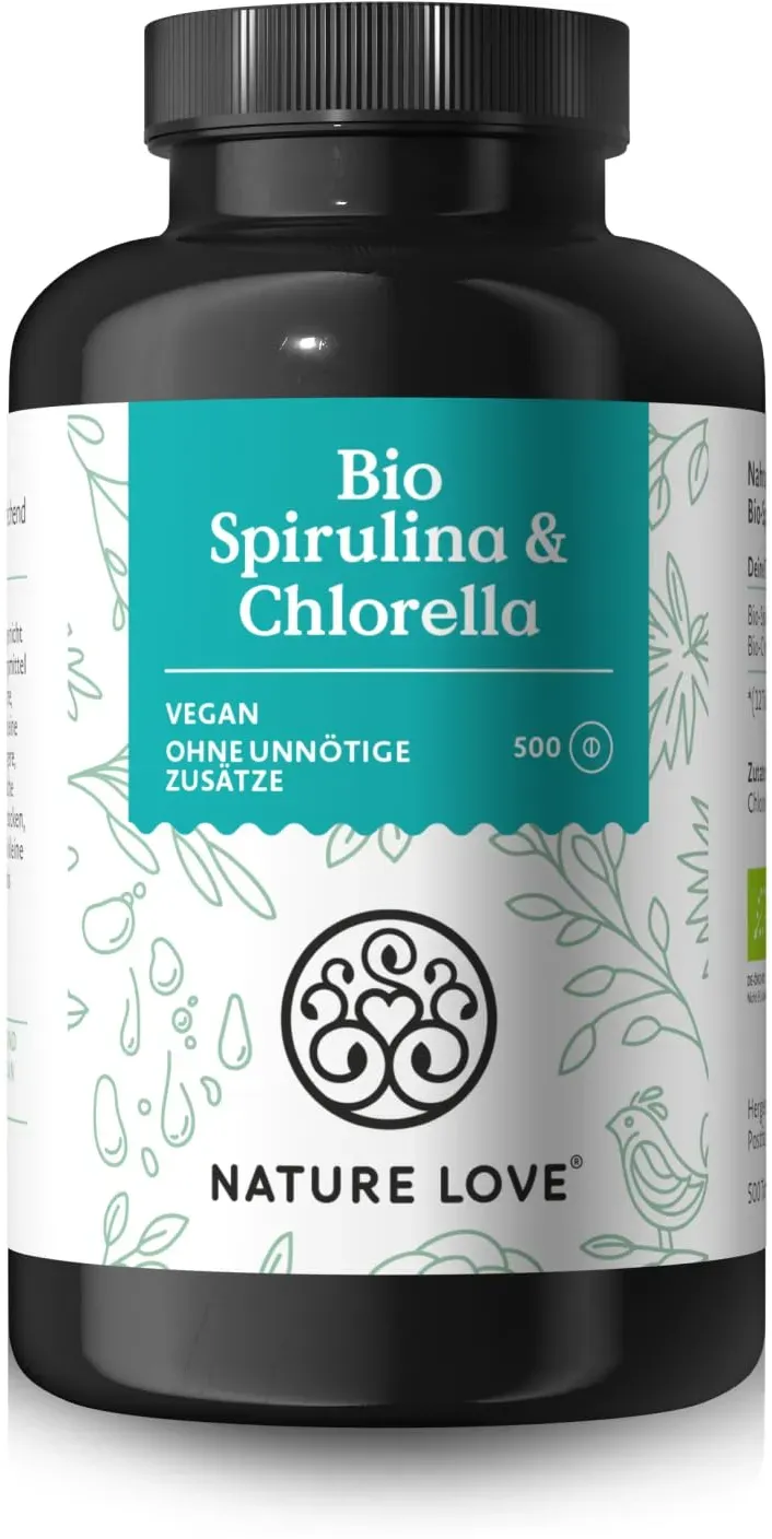82,95 / 1kg - Der angezeigte Preis knnte seit dem letzten Update gestiegen sein - EAN: 5412360007462 - Bezeichnung von Biotona Bio Chlorella + Spirulina PulverBiotona Chlorella + Spirulina Rohpulver Chlorella oder wrtlich kleines grnes Blatt ist eine alte, einzellige grne Swasseralge mit einer hellgrnen Farbe auf Grund des hohen... - Zustand: NEW - bei SHOP APOTHEKE - gefunden von Buycentral Ein hochdosiertes Bio Spirulina + Bio Chlorella Produkt in Tablettenform, das laborgeprüft und vegan ist. ![]() ![]() NATURE LOVE® Bio Spirulina + Bio Chlorella - je 3000mg Spirulina & Chlorella pro Tagesdosis - 500 Tabletten - Ohne Zusätze und Bio zertifiziert - Hochdosiert, laborgeprüft und vegan