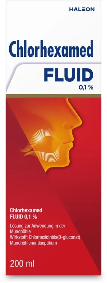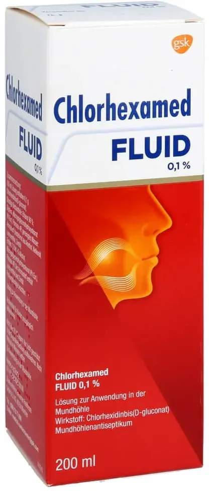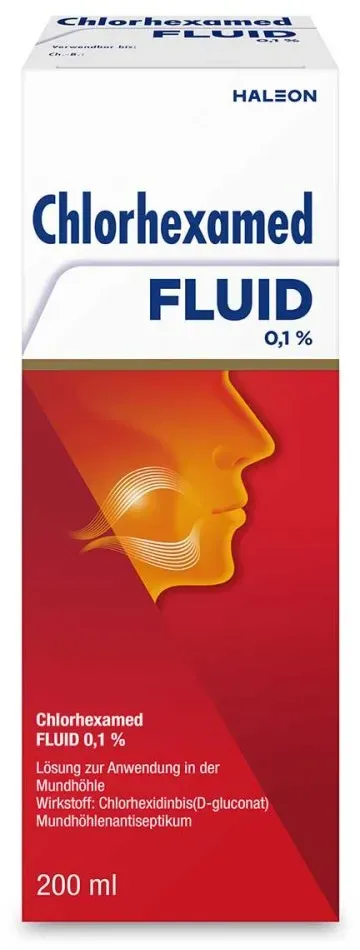 42,45 / l - Kategorie: Arzneimittel - Haleon - GTIN:4047400033500 - PZN:06997885 - Wichtige Hinweise (Pflichtangaben): Chlorhexamed Fluid 0,1 % Lösung zur Anwendung in der Mundhöhle . Wirkstoff: Chlorhexidinbis(D-gluconat). Anwendungsgebiete: Zur temporären intraoralen Keimzah... - 8,49 Euro bei Mycare - gefunden von billiger.de ![]() ![]() Chlorhexamed Fluid mundspülung 0,1%, Mundwasser mit Chlorhexidin, 200 ml, bei bakteriell bedingten Entzündungen des Zahnfleischs und der Mundschleimhaut