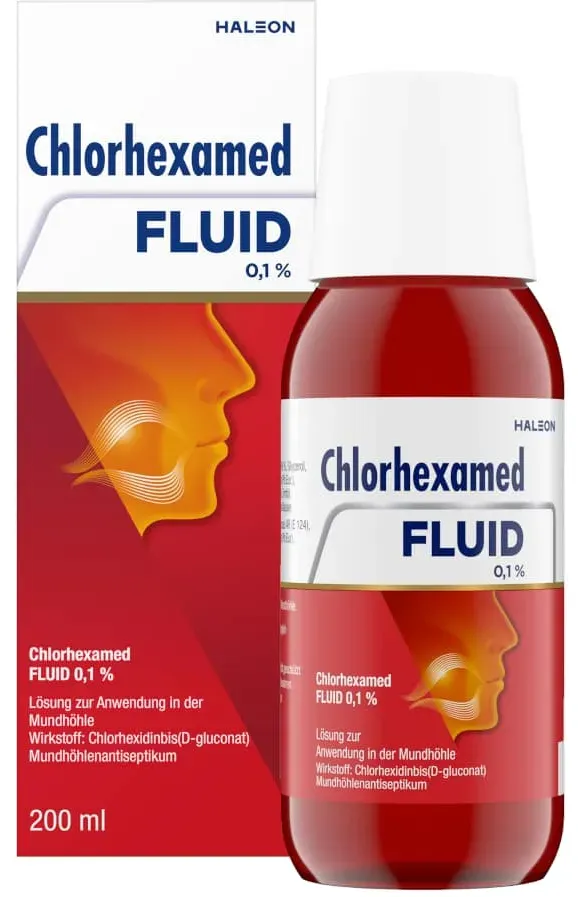 Zustand: Neu - 15,78 € / l - Mundwasser, -sprays & -spülungen - Chlorhexamed Haleon Germany GmbH - 60000000210874 - EAN: 5054563260680 - Chlorhexamed Tägliche Mundspülung spendet frischen Atem und enthält keinen Alkohol Die tägliche Mundspülung von Chlorhexamed liefert Kariesschutz durch das enthaltene Fluorid und ist dabei antibakteriell und alkoholfrei Das Mundwasser enthält die bewährte Chlorhexidin-Formel Reduziert Bakterien im Mundraum und hilft bei Reinigung und Pflege im Mund Hemmt die Plaque-Neubildung - bei Amazon.de ![]() ![]() Chlorhexamed Fluid 0,1 %