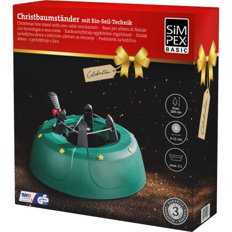 SIMPEX BASIC Celebration - EAN: 9100000540283 - Der Simpex Basic Celebration Christbaumständer ist die perfekte Lösung für ein gelungenes Weihnachtsfest. Dank der robusten Konstruktion aus formstabilem Vollkunststoff und innovativen Seil- und Fußhebeltechnik lässt sich der Baum mühelos und sicher fixieren - und hält auch dem alljährlichen Sturm auf die Geschenke stand. Der 2-Liter-Wassertank mit gut sichtbarer Wasserstandsanzeige sorgt dafür, dass Sie stets darüber informiert sind, wann es Zeit zum Gießen ist, damit sich Ihr Christbaum besonders lange von seiner schönsten Seite zeigt. Produktdetails : robuster Ständer aus schadstoffgeprüftem Vollkunststoff inkl. Wassertank mit Wasserstandsanzeige Höhe: 10,3 cm Gewicht: 4,2 kg maximale Baumhöhe: 2 m minimaler Stammdurchmesser: 3 cm maximaler Stammdurchmesser: 11 cm Durchmesser Standfläche: 32,5 cm TüV GS Co-Lizenz Weiteres Zubehör für ein stimmungsvolles Ambiente bietet der INTERSPAR Onlineshop: Mit eleganten Lampen & Leuchten und ansprechender Deko sorgen Sie im Handumdrehen für ultimatives Wohlfühlfeeling zuhause, während unsere breite Auswahl an kuscheliger Bettwäsche & Heimtextilien das Angebot optimal abrundet - auch außerhalb der Weihnachtsfeiertage. - bei interspar.at - aus Yadore Produktdaten ![]() ![]() Christbaumständer mit - Fußhebeltechnik + eBay Sicherung und Wassertank