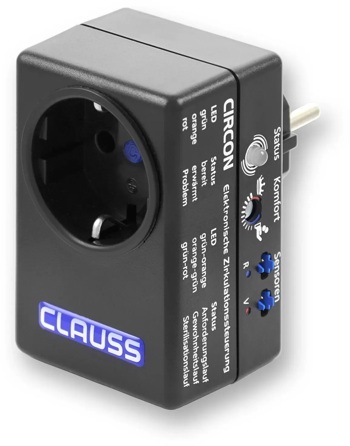 CIRCON - EAN: 04260007480137 - CIRCON - Intelligente ZirkulationspumpensteuerungElektronischer Zirkulationscontroller für die Steuerung der Warmwasser-Umwälzpumpe mit allem notwendigen Zubehör, Installationsmaterial und Bedienungsanleitung.Diese Zirkulationssteuereung hat einen länderspezifischen Stecker und kann nur an Schweizer Steckdosen genutzt werden!Die Zirkulationspumpe (Umwälzpumpe) Ihrer Trinkwasseranlage sorgt dafür, dass an jedem Wasserhahn ständig warmes Wasser zur Verfügung steht - auch, wenn es nicht nötig ist. Dadurch geht viel Energie verloren.CIRCON ist ein Vorschaltgerät für die Zirkulationspumpe, das maximale Einsparungen, höchstmöglichen Komfort und ausgezeichnete Trinkwasserhygiene gewährleistet. Abgerundet durch umfangreiche Diagnosefunktionen wird jede Warmwasser-Zirkulationspumpe zur smarten selbstlernenden Energiesparpumpe.Einsparung von Heizenergie und Elektroenergie mit kurzer AmortisationMaximaler Komfort durch vorausschauende Warmwasser-BereitstellungReduzierter Verschleiß des Heizkessels und der ZirkulationspumpeWerkzeuglose Installation, KEINE Programmierung/Einstellarbeiten nötigVerschleißfreier, geräuschloser BetriebDie grundlegende Funktionsweise basiert auf zwei sich überlagernden Betriebsarten:Wasserhahn als Fernbedienung:Der Temperaturfühler an der Steigleitung registriert jede kleinste änderung der Wassertemperatur. Wird irgendwo im Haus ein Wasserhahn nur kurz geöffnet, so schießt ein kurzer Stoß heißen Wassers in die Steigleitung und ... ![]() CIRCON 7480168 - Warmwasser-Zirkulationssteuerung, UK Set V3.22