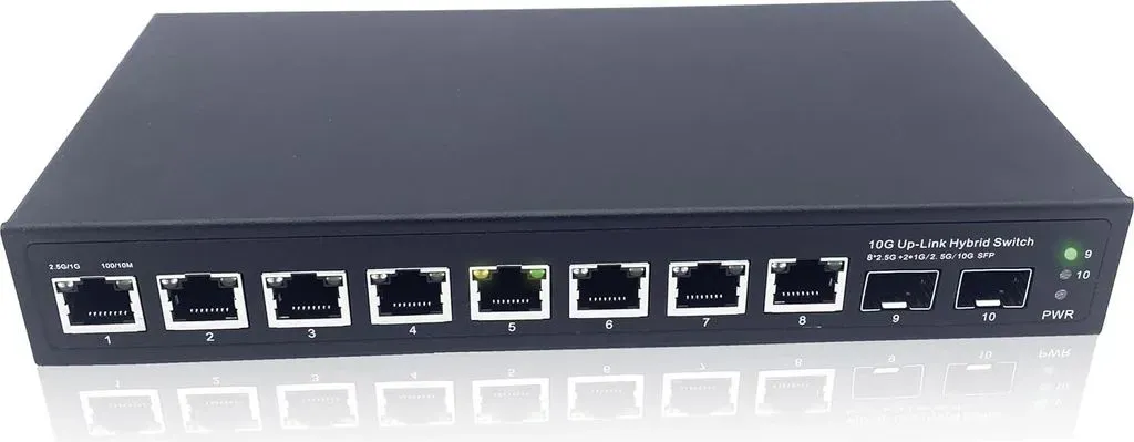 Verfügbarkeit: Auf Lager - Kategorie: Netzwerk-Switches - Elfcam - 10GbE PoE Switch Glasfaser-Switch kompatibel mit Cisco, Ubiquiti, Netgear AXM765, D-Link DEM-440XT, 2 10Gb SFP+ Ports (10G/2.5G/1.25G Last) und 4x 2.5GbE RJ45 PoE Ports (2.5G/1.25G) GGG100M Ermöglichen Hochgeschwindigkeits-Netzwerkleistung, Plug & Play Nicht verwaltet. Es sind keine komplizierten Einstellungen erforderlich, und Auto-Negotiation sorgt für optimale Leistung. Plug and Play: langlebiges, geräuscharmes Metallgehäuse mit Aufhängeösen für die Installation, Anschluss von Strom- und Netzwerkkabeln, keine Konfiguration erforderlich, kann leicht in verschiedenen Umgebungen installiert werden. Non-Blocking-Architektur: Gleichzeitiger voller Durchsatz an allen Anschlüssen Leise und lüfterlos, geeignet für jede Art von Umgebung. Quality-of-Service-Warteschlangen für die Organisation des Datenverkehrs nach Priorität. Robustes Modell mit Metallgehäuse, ideal für gemeinsam genutzte Anschlüsse und kleine/Home-Office-Netzwerke. Kann weithin in der Sicherheitsüberwachung, Computernetzwerke, drahtlose Abdeckung, Büro-und Heimnetzwerke, etc. verwendet werden. Darüber hinaus bieten wir den besten Kundenservice in Deutschland. - 86,99 Euro bei Amazon Marketplace PC Notebook - gefunden von billiger.de Dieser Elfcam 10Gbps Glasfaser Switch ist eine kostengünstige Option für den Einstieg in 10G-Netzwerke mit 2 SFP+ Ports und 8 2.5G RJ45 Ports. ![]() ![]() Elfcam - 10Gbps Glasfaser Switch Kompatibel mit Cisco, mit 2X 10G SFP+ Ports und 8X 2,5 Gigabit Ethernet RJ45 Ports, Plug & Play Non-Managed