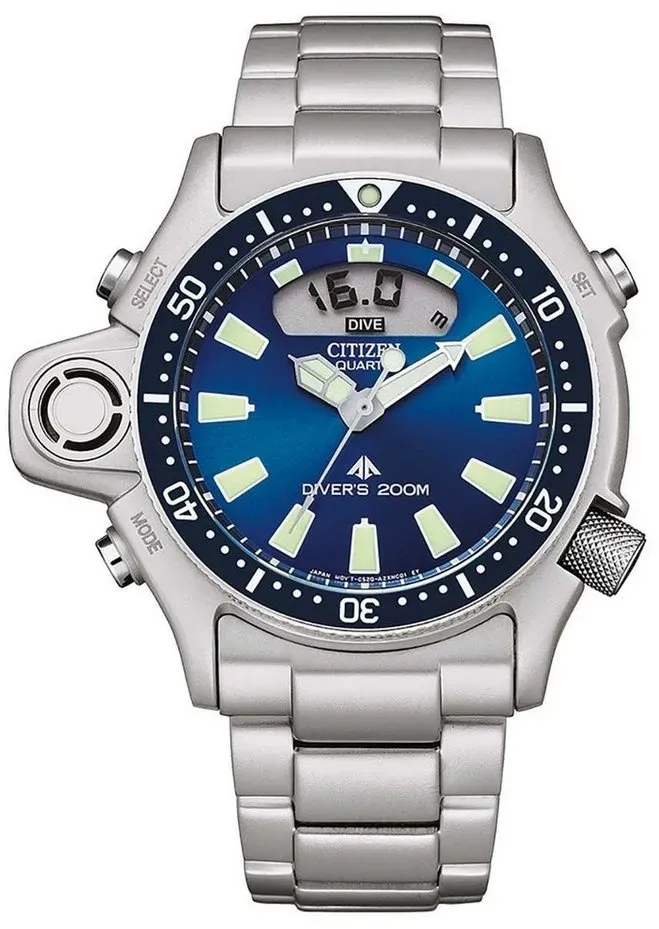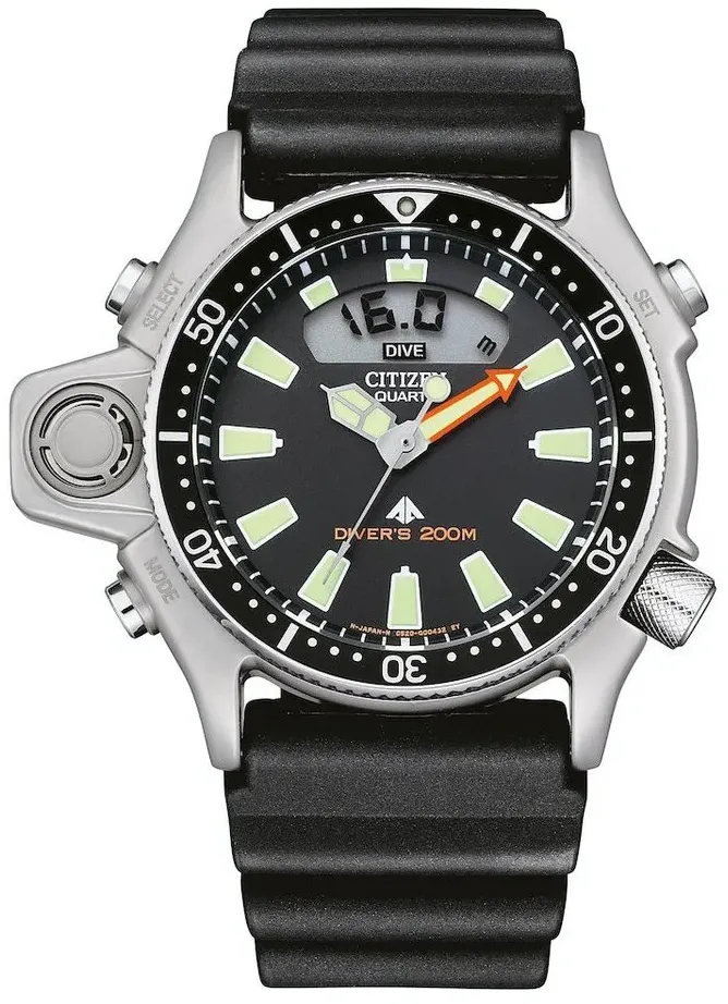 Kategorie: Chronographen - Citizen - GTIN:3660895068461 - Besondere Merkmale , Citizen Herrenuhr Promaster Marine AQUALAND JP2000-08E, - 386,10 Euro bei OTTO - gefunden von billiger.de Dieses Angebot für 399 Euro ist eine klassische Promaster Aqualand mit Tiefenmesser, ideal für Taucher, die eine zuverlässige Funktion suchen. ![]() ![]() CITIZEN Promaster - Aqualand Classic eBay JP2000-08E, Taucheruhr mit Tiefenmesser