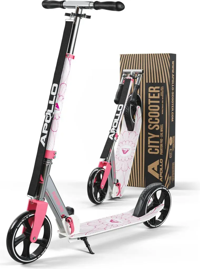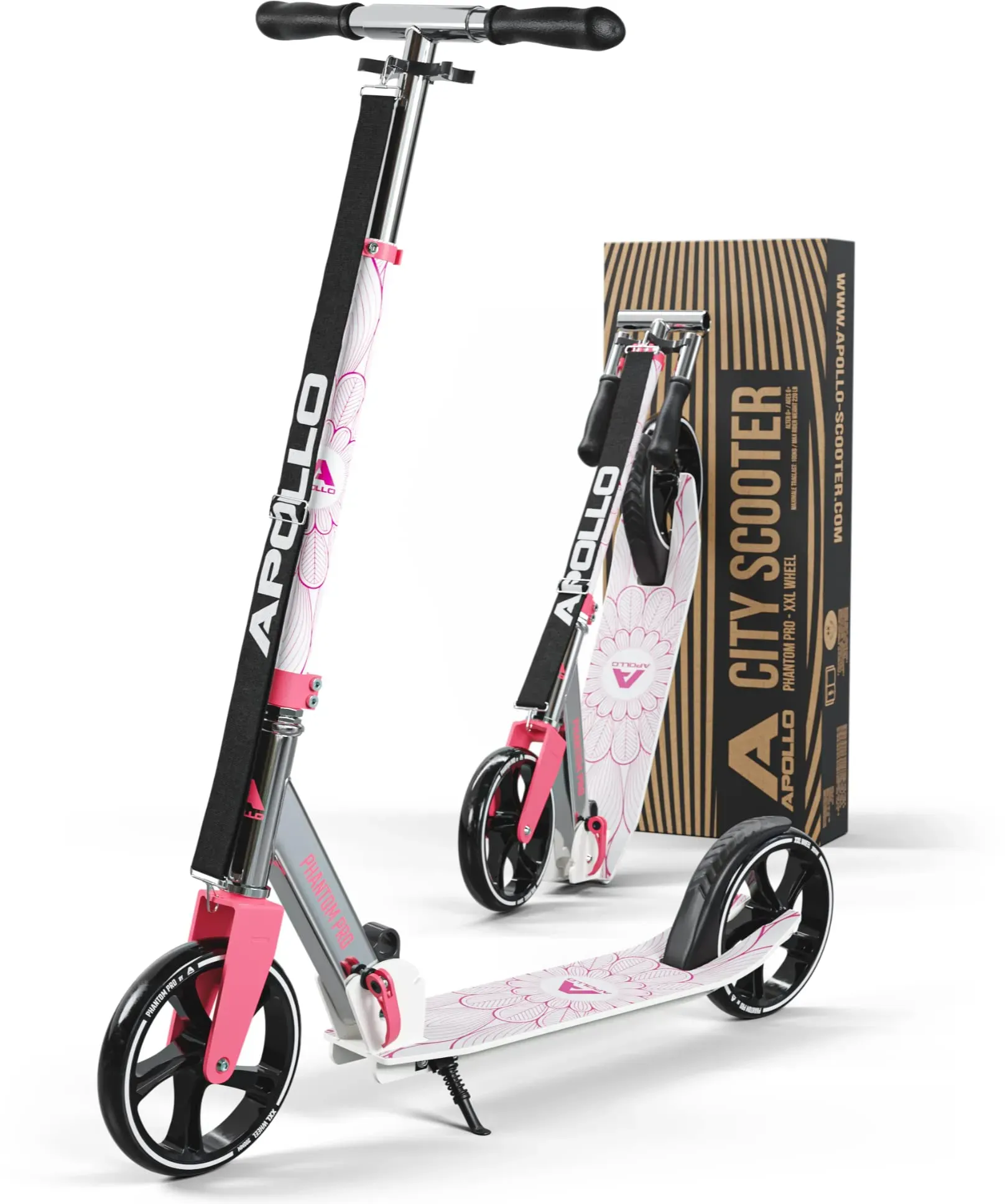 lieferbar-in 2-3 Werktagen bei dirApollo Cityroller City Scooter - Phantom Pro - Klappbarer City Roller für Kinder, Höhenverstellbar - Tretroller für Erwachsene - Roller rosa