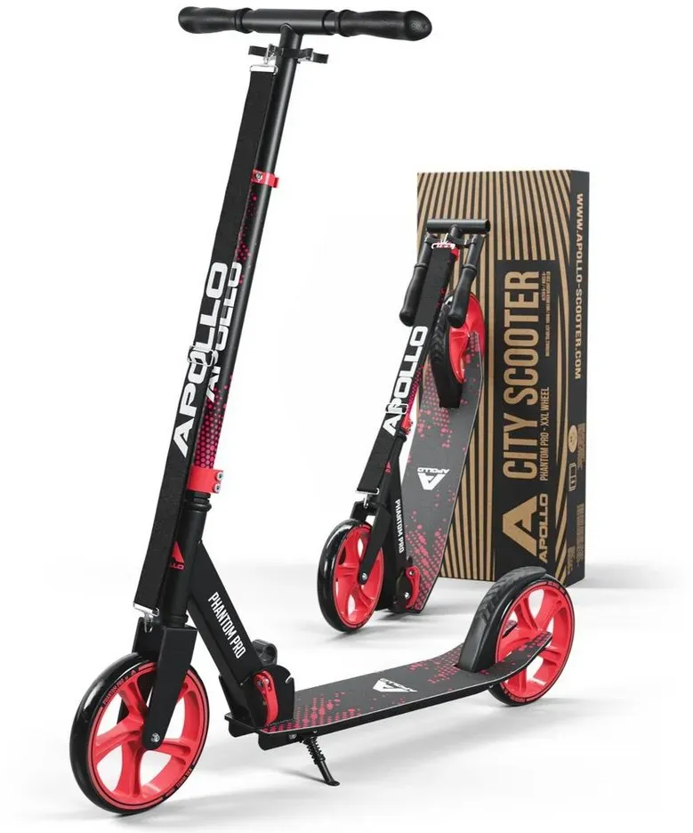 Kategorie: Kinderroller - Apollo - GTIN:4250518562569 - FAHRSPAß XXL: Apollo City-Scooter Phantom Pro - ein klappbarer und höhenverstellbarer Kickscooter mit 200mm XXL Rädern. Eine tolle alternative zum Fahrrad, perfekt für Pendler zum Mitnehmen in Zug, Bus & Bahn XXL GRößE: Der stabile Tret-Roller hat einen extra hohen Lenker, für ein angenehmes Fahrgefühl. Schnell und sicher mit dem Roller durch die Stadt. 1 KLICK SYSTEM: Durch den praktischen Klappmechanismus mit Schnellspanner wird der Lenker des Kick-Scooter in Sekunden umgeklappt und der große Roller lässt sich platzsparend verstauen. Für Kinder ab 7 / Erwachsene / von 120cm bis 190cm / bis 100kg HIGH SPEED: Die 200 mm großen High Rebound Räder sorgen für Höchstgeschwindigkeiten. Mit dem XXL Wheel Scooter inkl. Tragegurt kommen sie richtig schnell durch die Stadt, sind flexibel und stehen nie wieder im Stau. James Bond Style! SICHERES FAHRGEFüHL: Das extra große Trittbrett der XXL Scooter ist mit einem rutschfestem Griptape ausgestattet. Er verfügt der Kickscooter über gepolsterte Handgriffe, Hinterradreibungsbremse sowie einen Fußständer. Din EN 71 + EN 14619 geprüft Apollo City Scooter - Phantom Pro Der Apollo City Scooter Phantom Pro eignet sich perfekt für Pendler auf dem Weg zur Arbeit, zur Schule oder zur Uni oder einfach zum bequemen Cruisen durch die Stadt. Höhenverstellbar und Einklappbar! Durch den höhenverstellbaren Lenker lässt sich der Scooter einfach auf eine Höhe von 90-105cm einstellen. Der praktische ... Dieses Angebot ist mit 77,99 Euro eine gute Mittelklasse-Option für einen vielseitigen City-Roller. ![]() ![]() Apollo Phantom Pro City Scooter - XXL-Räder, faltbar, höhenverstellbar, Tretroller für Erwachsene, Kinder und Jugendliche, kompakter City-Roller
