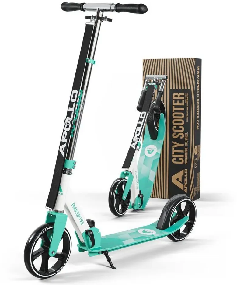 Kategorie: Kinderroller - Apollo - GTIN:4250518562576 - FAHRSPAß XXL: Apollo City-Scooter Phantom Pro - ein klappbarer und höhenverstellbarer Kickscooter mit 200mm XXL Rädern. Eine tolle alternative zum Fahrrad, perfekt für Pendler zum Mitnehmen in Zug, Bus & Bahn XXL GRößE: Der stabile Tret-Roller hat einen extra hohen Lenker, für ein angenehmes Fahrgefühl. Schnell und sicher mit dem Roller durch die Stadt. 1 KLICK SYSTEM: Durch den praktischen Klappmechanismus mit Schnellspanner wird der Lenker des Kick-Scooter in Sekunden umgeklappt und der große Roller lässt sich platzsparend verstauen. Für Kinder ab 7 / Erwachsene / von 120cm bis 190cm / bis 100kg HIGH SPEED: Die 200 mm großen High Rebound Räder sorgen für Höchstgeschwindigkeiten. Mit dem XXL Wheel Scooter inkl. Tragegurt kommen sie richtig schnell durch die Stadt, sind flexibel und stehen nie wieder im Stau. James Bond Style! SICHERES FAHRGEFüHL: Das extra große Trittbrett der XXL Scooter ist mit einem rutschfestem Griptape ausgestattet. Er verfügt der Kickscooter über gepolsterte Handgriffe, Hinterradreibungsbremse sowie einen Fußständer. Din EN 71 + EN 14619 geprüft Apollo City Scooter - Phantom Pro Der Apollo City Scooter Phantom Pro eignet sich perfekt für Pendler auf dem Weg zur Arbeit, zur Schule oder zur Uni oder einfach zum bequemen Cruisen durch die Stadt. Höhenverstellbar und Einklappbar! Durch den höhenverstellbaren Lenker lässt sich der Scooter einfach auf eine Höhe von 90-105cm einstellen. Der praktische ... Mit 74,99 Euro ist dieser City-Roller eine preiswerte Option für einen vielseitigen Einsatz. ![]() ![]() Apollo Phantom Pro City Scooter - XXL-Räder, faltbar, höhenverstellbar, Tretroller für Erwachsene, Kinder und Jugendliche, kompakter City-Roller