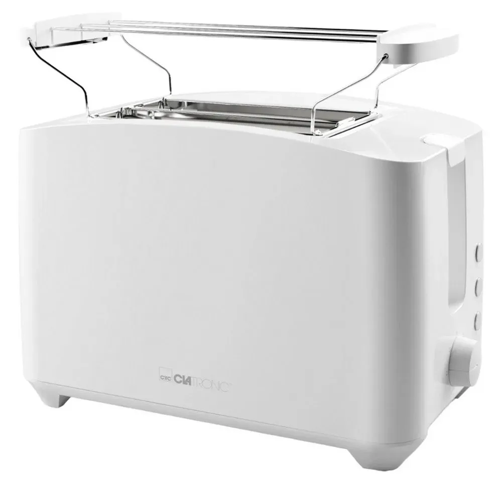 Auf Lager Versand durch AmazonClatronic® Toaster 2 Toastschlitze | Toaster mit Brötchenaufsatz | Toaster 2 Scheiben mit Liftfunktion | Toster mit Auftau- und Aufwärm-Funktion | für Brötchen und Toast | TA 3801 weiß