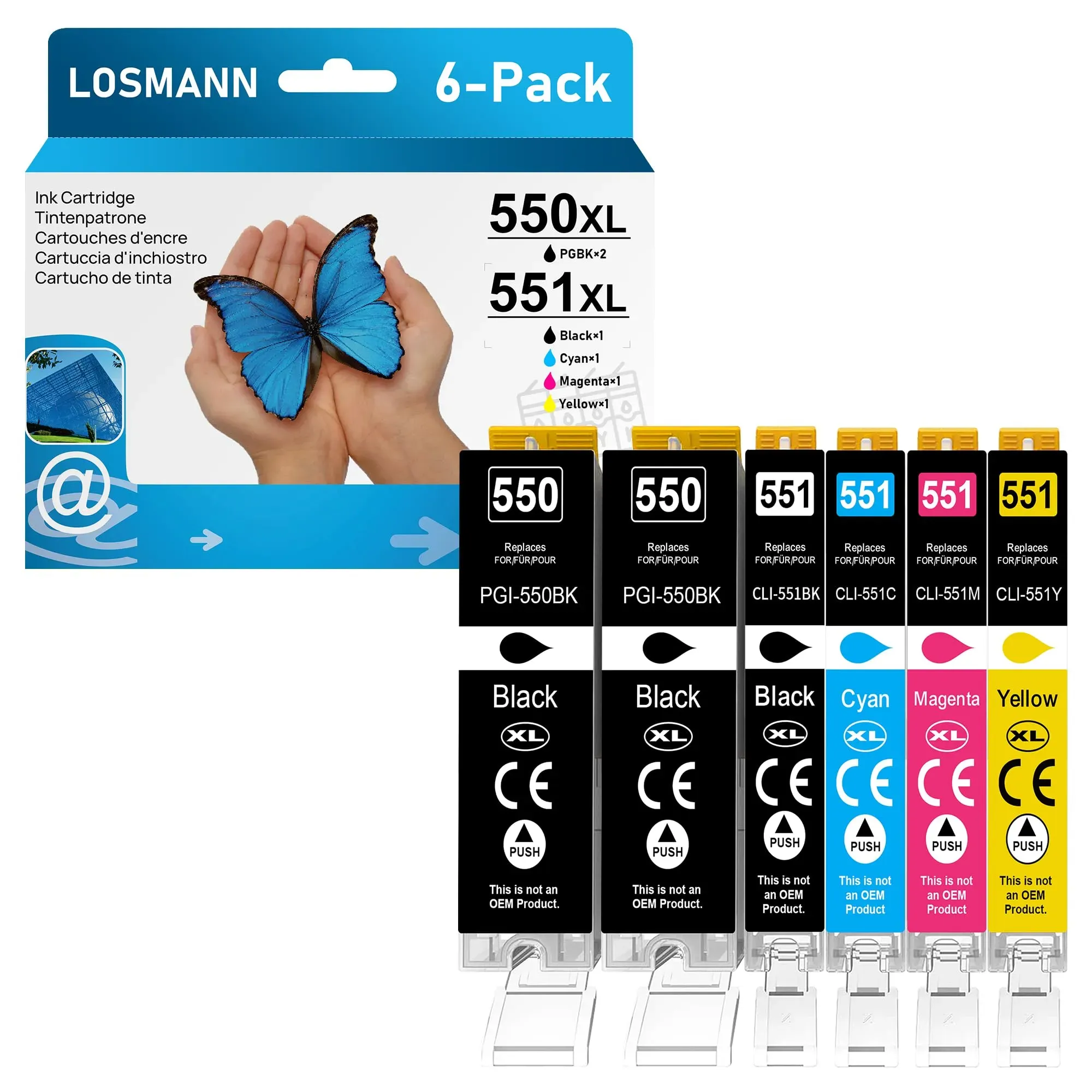 Kategorie: Druckerpatronen - Freedomink - GTIN:0619191246557 - 1.Paket Inhalt: 2 * 550XL Schwarz, 2 * 551XL Photoschwarz, 2 * 551XL Cyan, 2 * 551XL Magenta, 2 * 551XL Gelb, Kompatible Tintenpatronen Ersatz für Canon 550XL 551XL Multipack (Nicht-Original). 2.Tintenvolumen: 24 ml für 550XL Schwarz, 13 ml für 551XL Farbe. Reichweite: 600 Seiten in Schwarz, 350 Seiten in Farbe (Basierend auf 5% Deckung) 3.Kompatible für MG5400 MG5450 MG5550 MG5650 MG6350 MG6450 MG6650 MG7150 MG7500 MG7550 MX725 MX920 MX925 iP7200 iP7250 iP8750 iX6850 Drucker. 4.10 Pack kompatiblen Tintenpatronen 550XL 551XL Ersatz für Canon 550XL 551XL multipack Tintenpatronen (Nicht OEM) 5.Unsere Qualität wurde durch Bescheinigung ISO-9001 / ISO 14001 / ROHS genehmigt. 2. Eine dreijährige 3. Genießen Sie Amazon Fulfillment Service mit hohem Standard 4. 24 Stunden Kundendienst! - 11,90 Euro bei Amazon Marketplace CE - gefunden von billiger.de ![]() ![]() LOSMANN 550 551 XL Druckerpatronen Kompatibel für Canon PGI-550 XL CLI-551 XL für Pixma MX725 MX925 MX920 MG5650 MG5550 MG6650 iP7250 iX6850 iP7200 MG5400 MG6350 MG6450 MG5450 MG7150 MG7500 (6-Pack)