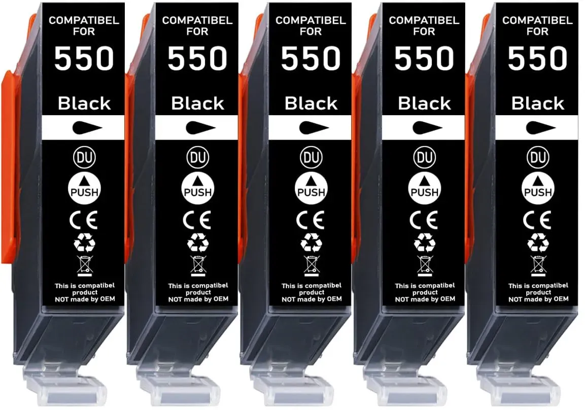 Kategorie: Druckerpatronen - LOSMANN - GTIN:0755205116949 - Packungsinhalt: 6er-Pack PGI-550XL CLI-551XL Tintenpatronen( 2 PGBK, 1 Schwarz , 1 Cyan ,1 Magenta , 1 Gelb ) Kompatible Drucker: Kompatibler für Canon Pixma MX725 MX920 MX925 IP7200 IP7250 IP8750 IX6850 MG5400 MG5450 MG5550 MG5650 MG5655 MG6350 MG6450 MG6650 MG7100 MG7150 MG7500 MG7550 MG8750 Geschätzte Seitenausbeute: 600 Seiten pro 550XL PGBK Patrone, 350 Seiten pro 551XL schwarz Patrone, 350 Seiten pro mehrfarbiger ( Cyan/Magenta/Gelb) Tintenpatrone bei 5% A4-Abdeckung Professionell gefertigt : Hochwertige kompatible Tintenpatrone mit Chip, 100% passend zu guten Druckergebnissen, bis zu Lagerung ohne Probleme, einfache Handhabung: Auspacken - Einstecken - Drucken starten! Hohe Qualität: Unsere Druckerpatronen sind mit den neuesten Chips ausgestattet und zeichnen sich durch perfekte Kompatibilität und Druckleistung aus. Sowohl Bilder als auch Texte werden extrem klar, lebendig und dynamisch dargestellt. - 11,99 Euro bei Amazon Marketplace CE - gefunden von billiger.de ![]() ![]() Druckerparadies 5er Pack nur Schwarz 550XL 551XL Kompatible Druckerpatronen Multipack für Canon PGI-550 XL CLI-551 XL Canon Pixma MG5650 MG5550 MG6350 MG6450 IP7250 IP7200 MX725 MX920 MX925 IX6850