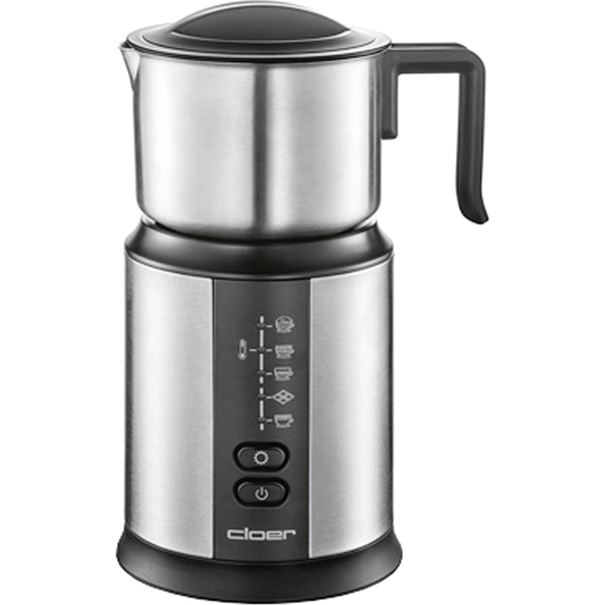 84,99 /Stück - Kategorie: Milchaufschäumer - Cloer - GTIN:4004631015088 - Funktionen: Latte Modus, Cappuccino Modus, Cappuccino Plus, Hohe Temperatur Modus, Kaltumrühr Modus und Schoko Modus Moduswahltaste mit LED-Leuchten, Start-/ Stopptaste und akustischer Fertigmeldung Füllmenge für Milchschaum bis 250 ml Heiße Schokolade bis 450 ml Edelstahlkännchen mit Mengenmarkierung Induktionsverfahren: gleichmäßige Wärmeverteilung und kein Anbrennen Die Aufschäumspule wird durch einen Magneten zentriert Spule haftet beim Ausgießen am Kännchen Kännchen, Spule und Deckel spülmaschinengeeignet Kabelaufwicklung und rutschfeste Gummifüße Schwarz/silbernes Kunststoffgehäuse mit Edelstahlkännchen - 84,99 Euro bei Saturn Online Shop - gefunden von billiger.de ![]() CLOER 7789 Milchaufschäumer, Schwarz/Edelstahl, 500 Watt, 0,25 l