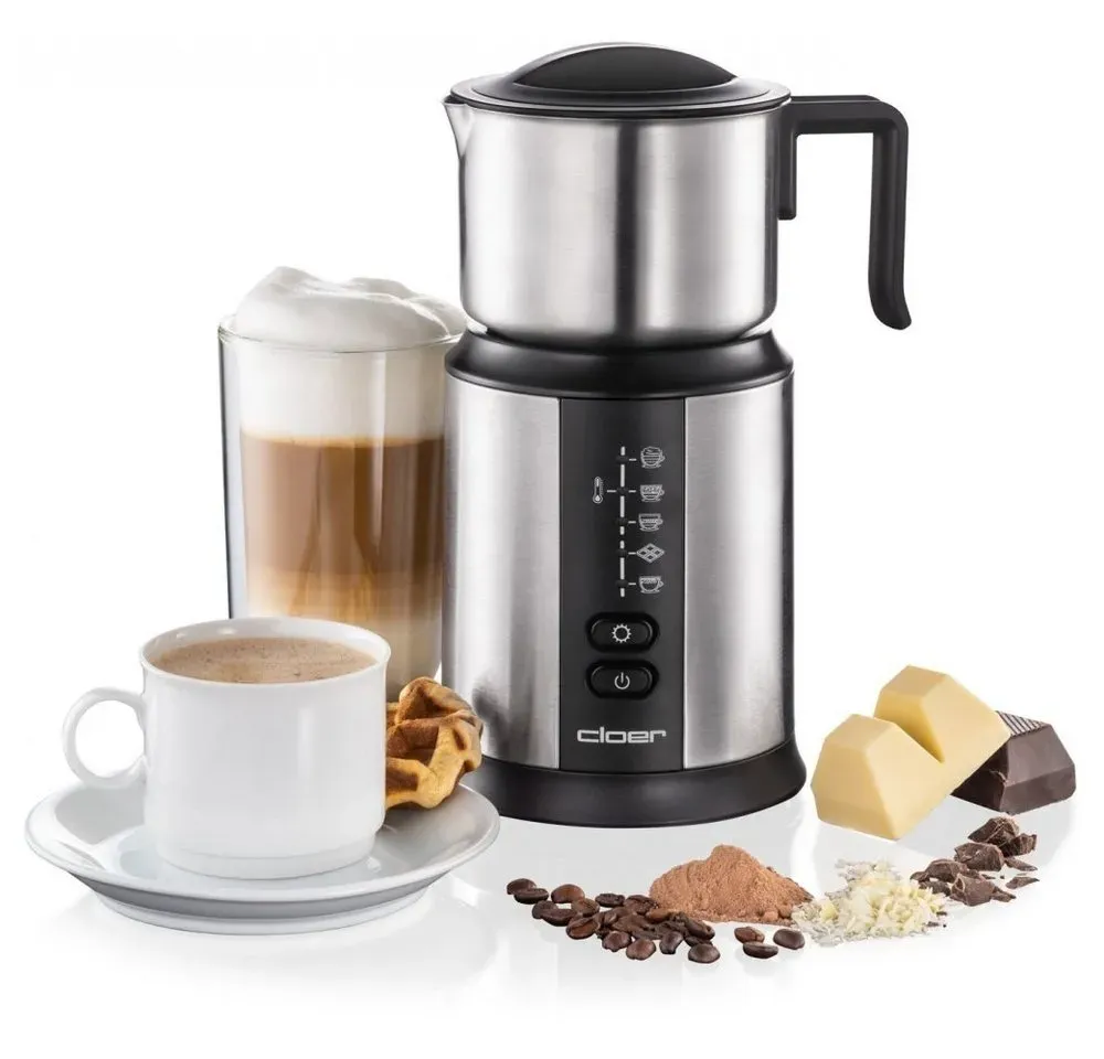 cloer - EAN: 4004631015088 - Funktionen: Latte Macchiato - Cappuccino - Cappuccino Plus - Hohe Temperatur - Kaltumrühr und Schoko, Moduswahltaste mit LED-Leuchten, Start-/Stopptaste und akustischer Fertigmeldung, Füllmenge für Milchschaum bis 250 ml, Heiße Schokolade bis 450 ml, Edelstahlkännchen mit Mengenmarkierung,... - bei ejoker.de - aus Yadore Produktdaten ![]() ![]() Cloer Milchaufschäumer, Induktionsverfahren - kein Anbrennen, Fassungsvermögen Aufschäumen: 250 ml, (7789)