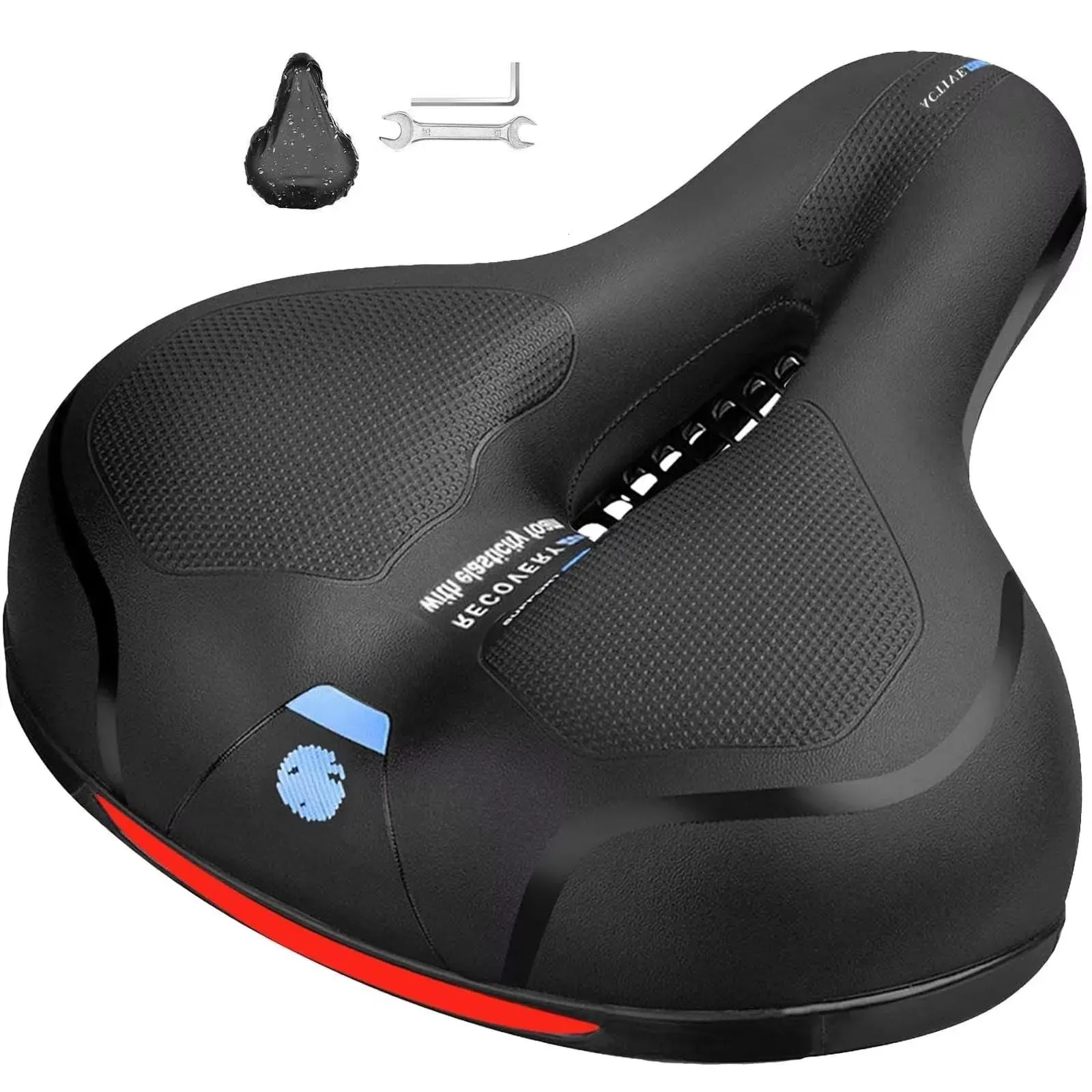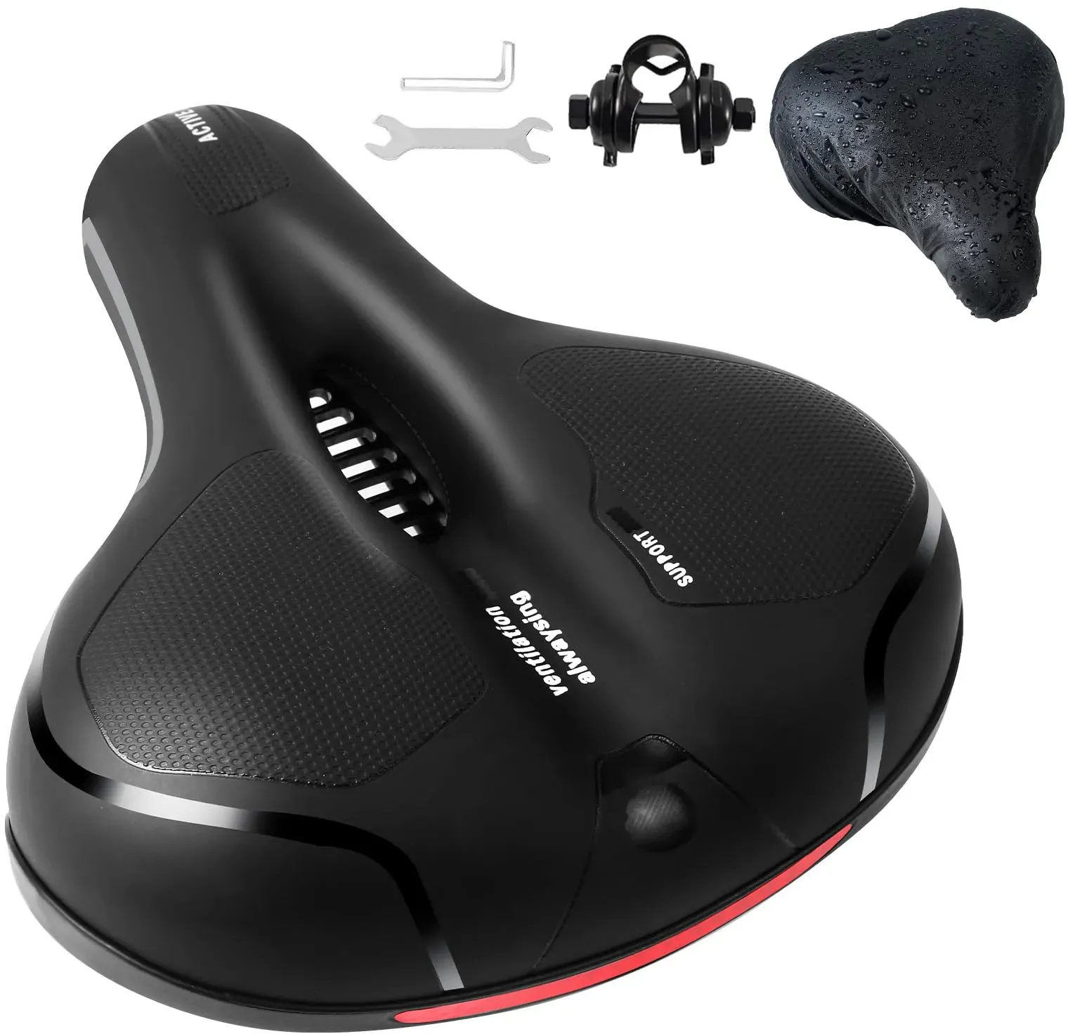 Auf Lager Versand durch AmazonFahrradsattel Cloud Comfort Pro Max Sattel - Endlich Schmerzfrei Radfahren Bequem Weich Memory Schaum Radsattel Mit Rotem Warnstreifen Cityradsättel Mountainbikesättel mit Federung