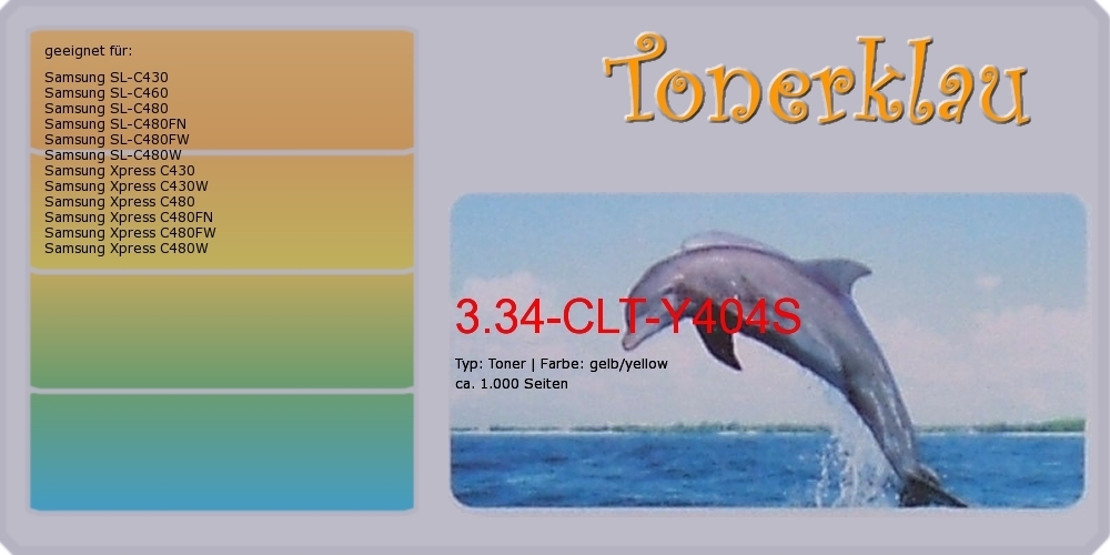 Verfügbarkeit: Auf Lager, sofort versandfertig Lieferzeit 1-2 Werktage - Kategorie: Toner - Samsung - GTIN:0191628463510 - HP Original CLT-Y404S Toner gelb 1.000 Seiten (CLT-Y404S/ELS) für Xpress C430/W, C480/FN/FW/W - 58,38 Euro bei Office Partner GmbH - gefunden von billiger.de Dieses Sparset bietet alle 4 Farben als kompatible Toner von D C zu einem attraktiven Preis. ![]() Kompatibel Samsung CLT-K404S, CLT-C404S, CLT-M404S, CLT-Y404S Sparset 4 Toner alle Farben von D C
