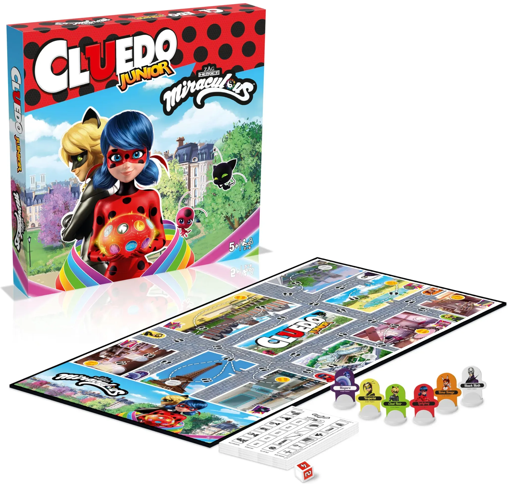 Kategorie: Gesellschaftsspiele - Winning Moves - GTIN:5036905044608 - Das Cluedo Miraculous Spiel taucht die Spieler in die Welt der Pariser Superhelden Ladybug und Cat Noir. Dieses Gesellschaftsspiel lädt die Teilnehmer ein, das Geheimnis der Entführung eines ihrer Freunde zu lösen, indem sie verschiedene ikonische Orte von Paris erkunden und Hinweise sammeln. Dieses Rollenspiel ist perfekt für Liebhaber der Miraculous Serie. Entworfen für Familienbrettspiele, das Cluedo Miraculous Spiel ist ideal für Abende mit Familie oder Freunden. Als Logikspiel stimuliert es das Denken und die Deduktion und bietet eine spielerische und ansprechende Erfahrung. Kinder, Jugendliche und Erwachsene werden alle Spaß daran finden, das Geheimnis gemeinsam zu lösen. Das Cluedo Miraculous Spiel eignet sich dank seines interaktiven und strategischen Gameplays auch für Familienstimmungsspiele. Dieses Boggle-Brettspiel fördert die Zusammenarbeit und den freundlichen Wettbewerb zwischen den Spielern und verspricht stundenlange Unterhaltung und spannende Intrigen. Der Inhalt der Cluedo Miraculous Spielbox enthält: 1 personalisiertes Spielbrett, 1 Anleitungsbogen, 1 Blatt mit 17 Aufklebern, 1 Punktebuch, 1 Spiel mit 43 Karten, 6 Papierfiguren-Chips, 14 Kunststoffhalter für Papierchips, 6 Objektchips, 1 Würfel, 1 Flyer und 1 Super Top-Karte. Trump All diese Elemente ren ein umfassendes und immersives Spielerlebnis für Fans von Teenager-Spielen. Das Cluedo Miraculous Spiel ist ein perfektes Geschenk ... Dieses Familienspiel von Hasbro ist eine bewährte Wahl und bietet stundenlangen Spielspaß für die ganze Familie. ![]() ![]() Hasbro Spiele B0335100 - Cluedo Junior, Familienspiel