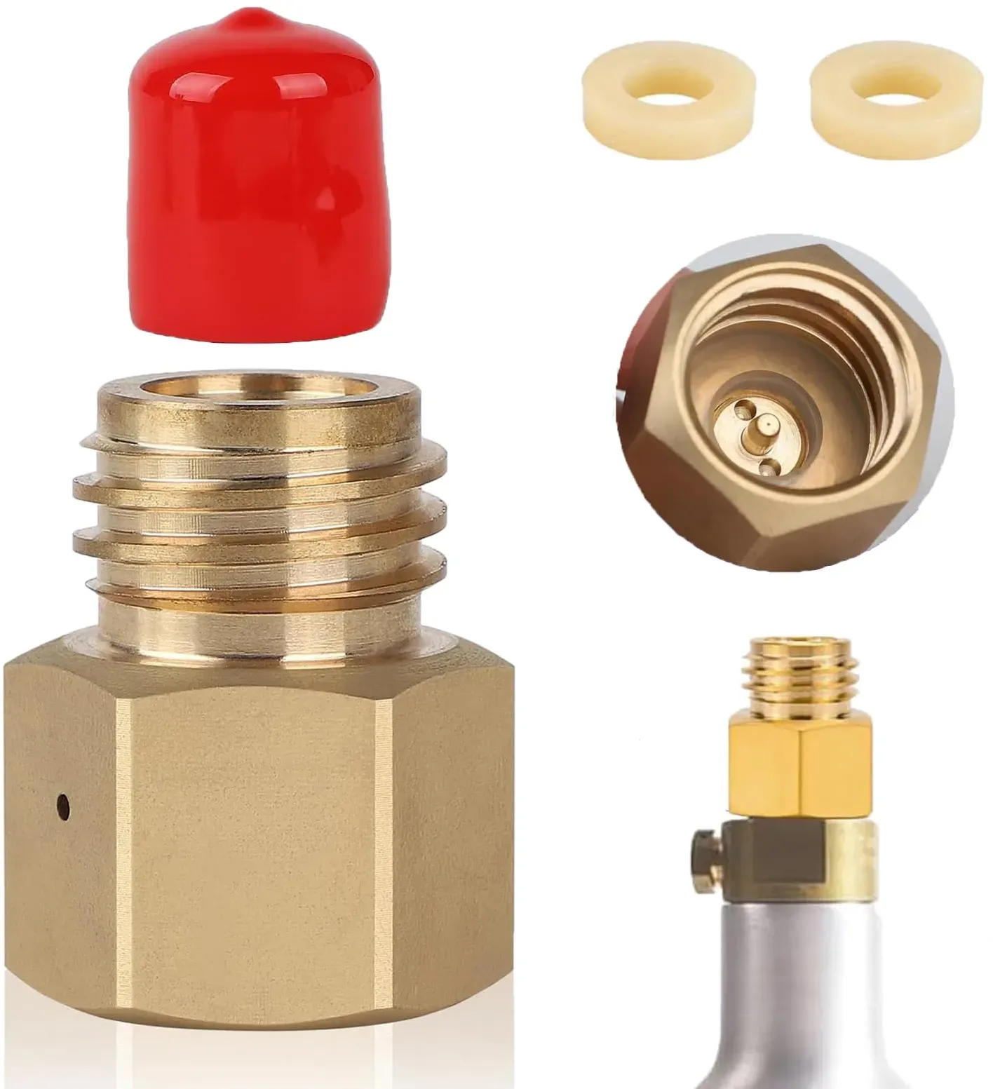 Kategorie: Küchengeräte-Zubehör - peelanmall - Diese Soda-Zylinder-Adapterkopf ist aus Messing mit guter Korrosions- und Abriebfestigkeit, die die Haltbarkeit und Luftdichtheit der Verbindung gewährleistet, geeignet für den langfristigen Einsatz und nicht leicht zu korrodieren und beschädigt werden. Die geringe Größe ist auch praktisch für den Einsatz im Freien. Installieren Sie diesen Gasflaschenadapter, wenn Sie die Gasflasche anschließen, richten Sie zuerst die Gewindeverbindung aus, ziehen Sie sie dann mit der Hand an, verwenden Sie dann einen Schraubenschlüssel, um sie mäßig anzuziehen, verwenden Sie nicht zu viel Kraft, um den Dichtungsring der Gewindelast nicht zu beschädigen. Nach dem Anziehen die Luftquelle langsam öffnen und prüfen, ob Luft austritt, um sicherzustellen, dass der Adapter normal verwendet werden kann. Der Arbeitsdruck dieses Flaschengewindeadapters kann weniger als 3000psi (ca. 207 bar) betragen, was viel höher ist als der normale Arbeitsdruck von 100-120psi von Haushalts-Soda-Maschinen, und er kann das Hochdruckgas effektiv innerhalb des Sicherheitsbereichs kontrollieren, um die Sicherheit und Stabilität des Füllprozesses zu gewährleisten. Dieser kompakte Konverter bietet die Flexibilität, die TR21-4 Gewindeflasche mit dem Quooker Cube System zu verwenden, für das sonst die TR21-3 Gewindeflasche erforderlich wäre. Er nutzt die vorhandenen TR21-4-Flaschenressourcen effizient und reduziert die Anzahl der Flaschen, die aufgrund von inkompatiblen ... ![]() ![]()