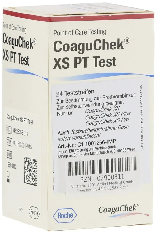 4.03 / 1 ct - Kategorie: Arzneimittel - Roche - GTIN:4015630943029 - PZN:11593569 - 11593569: Roche Diagnostics Deutschland GmbH - COAGUCHEK XS PT Test PST 24 St - 96,74 Euro bei ayvita.de - gefunden von billiger.de Ein Standardpaket mit 24 Teststreifen zu einem fairen Preis von einem bekannten Anbieter. ![]() ![]() Roche Coaguchek XS PT Test 24 St