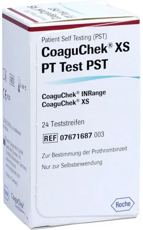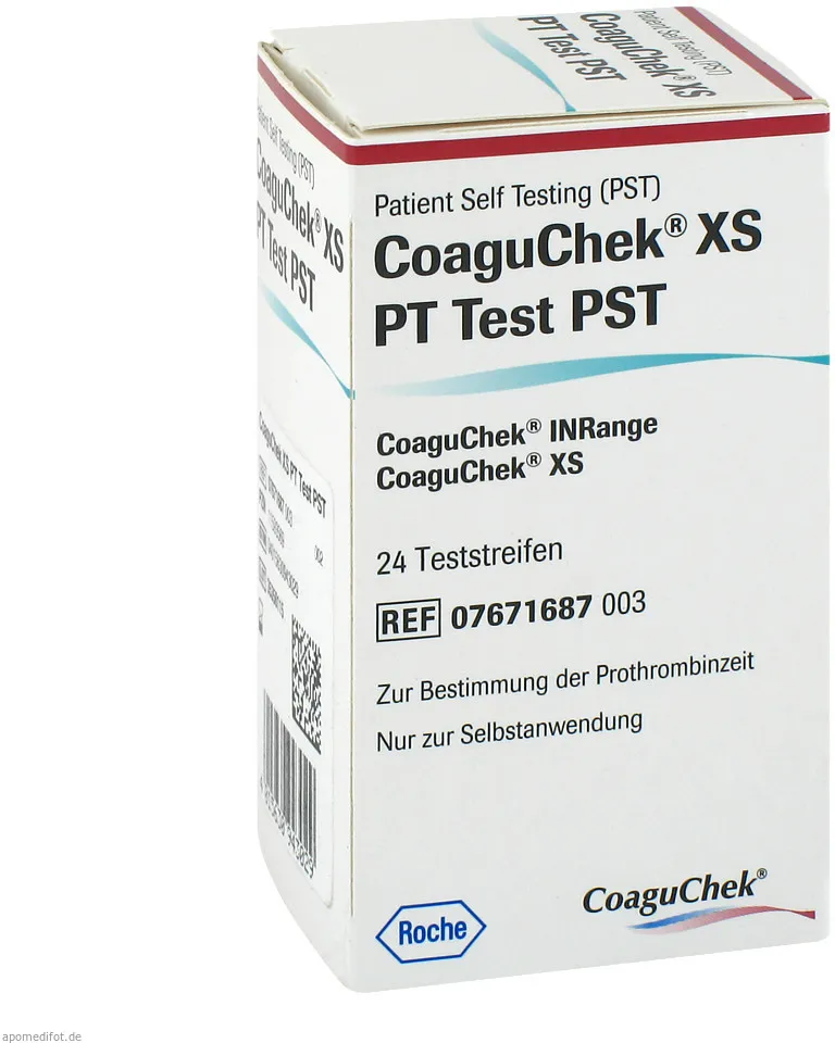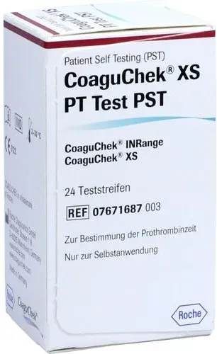 EAN: 4150115935691 - Coaguchek XS PT Test PST - Präzise Gerinnungskontrolle für die Selbstanwendung Die Coaguchek XS PT Test PST ermöglichen eine zuverlässige Bestimmung der Prothrombinzeit (Pt/Inr) aus kapillarem oder venösem Vollblut - ideal für Patient:innen unter Antikoagulationstherapie. Die Vorteile auf einen Blick: Schnelle Ergebnisse: Innerhalb weniger Minuten direkt vor Ort. Einfache Anwendung: Für die Selbstkontrolle zu Hause oder unterwegs. Mobil einsetzbar: Kompatibel mit CoaguChek XS, XS Plus, XS Pro und INRange. Sicher & präzise: Medizinprodukt mit hoher Messgenauigkeit. - bei aponeo.de - aus Yadore Produktdaten Ein sehr preiswertes Angebot für 24 Teststreifen, das eine gute Option für den Einstieg darstellt. ![]() ![]() Roche Coaguchek XS PT Test PST