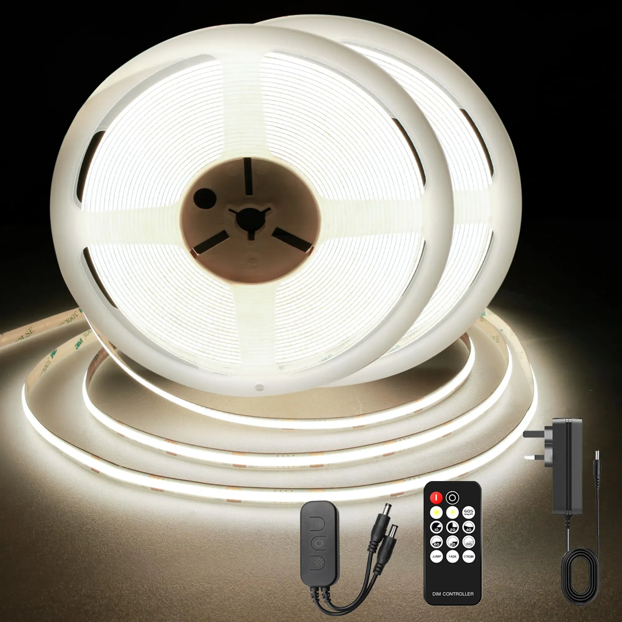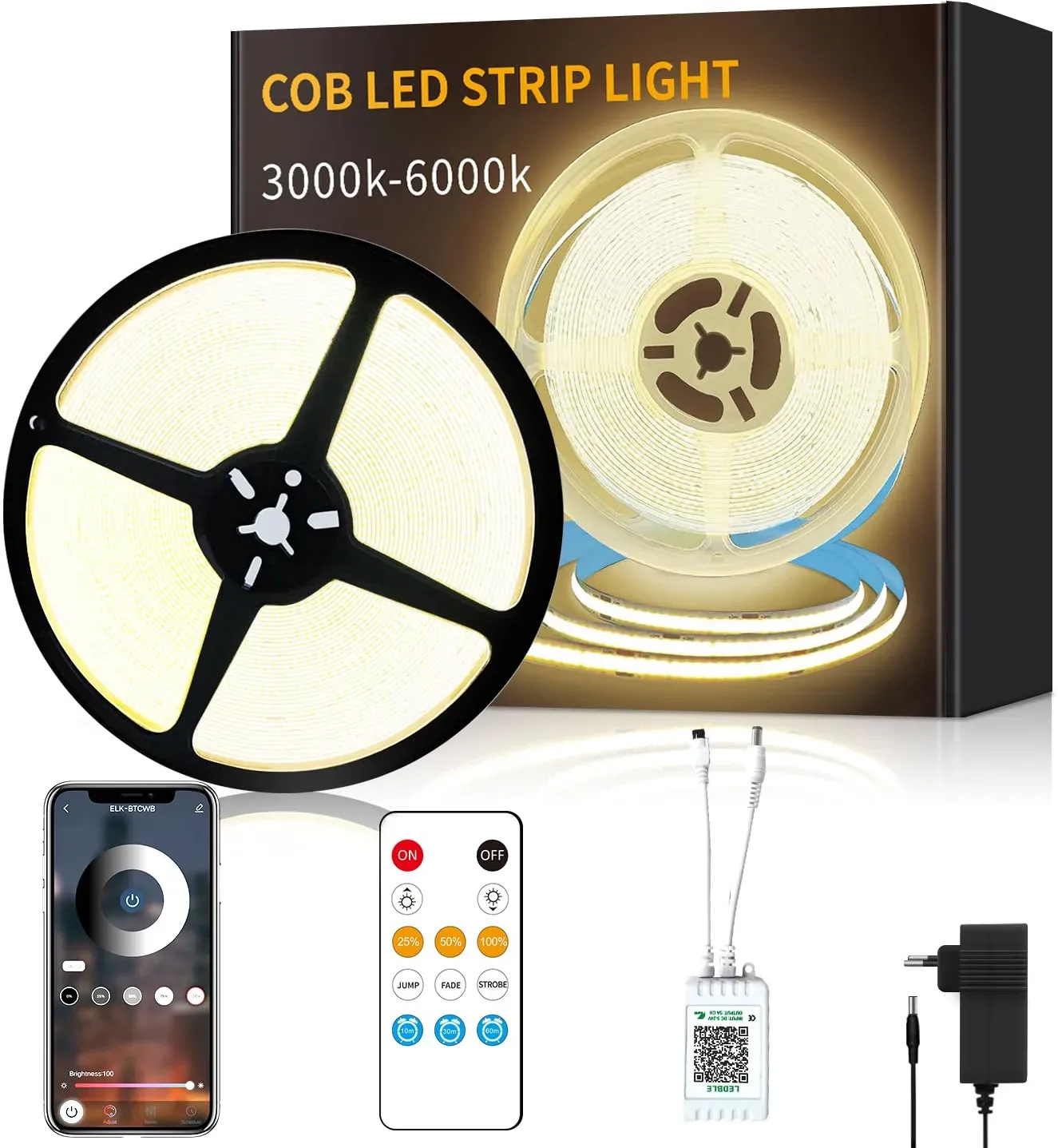 EEK: F - Kategorie: LED-Lampen - yeewhale - COB led leiste Hohe Helligkeit : 3000K warmweiß COB Led streifen, 15M COB Led strip mit 4800 Leds Farbwiedergabeindex geringerer Stromverbrauch, 180-Grad-Abstrahlwinkel-Design, ein breiterer Beleuchtungsbereich von 50%. Mehrere Chips auf der COB-leds, gleichmäßige Beleuchtung, auch bei Verwendung mit Aluminiumgehäuse, gibt es keine Notwendigkeit, sich um dunkle Flecken zu kümmern Mehrfachsteuerungsmethoden : Infrarotfernbedienung und App Controller] cob led Die 13 Tasten Infrarotfernbedienung und der App-Controller (Empfänger) verfügen über Speicherfunktion, Timerfunktion (10M/30M/60M), Helligkeitserhöhung/Verringerung (10-Stufen) und 3-feste Helligkeitsstufen (25%/50%/100%),3 Modi (Sprung, Verlauf, Flimmern). Hinweis: Bevor Sie die Fernbedienung verwenden, muss die Isolierung am Ende entfernt werden. DIY&Safety Der Yeewhale dimmbare COB LED Streifen hat stärkeren Kleber und flexibles Design. Der 24V COB LED band ist sicher und langlebig. Der Cob led leiste wird von 24V Niederspannung betrieben, wodurch der Grad der Gefahr reduziert wird. Der Cob LED Streifen ist weich und robust und ist nicht leicht zu brechen, wenn gefaltet. Beachten Sie, dass bei der Installation des Cob Led strip, es auf einer sauberen/trockenen/glatten Oberfläche installiert werden sollte. Cutting&Widely Used Der Yeewhale 15M dimmbare COB led band kann frei geschnitten werden (bitte entlang der Lötstelle schneiden), und der cob LEDStrip ist eine ideale Wahl ... Dieser Wisada COB LED Streifen ist mit 720 LEDs/m besonders hell und flexibel, ideal für DIY-Projekte und Party-Dekorationen, auch wenn das Netzteil separat erworben werden muss. ![]() ![]() Wisada 24V COB LED Streifen Selbstklebend, 15M 720LEDs/m Superhell Naturweiß LED Lichtband, Flexibler LED Band Kupfer FPCB (Beliebiger Schnitt) DIY LED Lichterketten für Party Deko(Ohne Adapter)