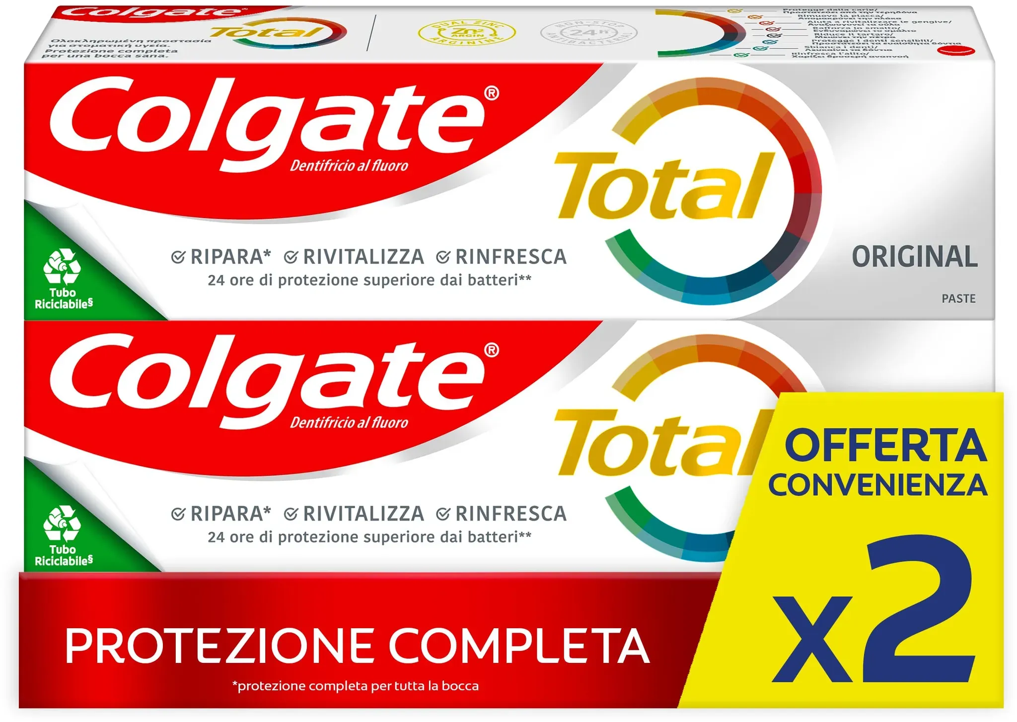 135.47 /1l - Kategorie: Zahnpflegeartikel - Colgate - GTIN:8718951479999 - Inhaltsstoffe Inhaltsstoffe , Ingredientes: fluoruro s dico (1450 ppm f-), glycerin, aqua, hydrated silica, sodium lauryl sulfate, arginine, aroma, cellulose gum, zinc oxide, poloxamer 407, zinc citrate, tetrasodium pyrophosphate, xanthan gum, cocamidopropyl betaine, sodium floride, sodium saccharin, phosphoric acid, sucralose, eugenol, ci 74160., - 10,16 Euro bei OTTO - gefunden von billiger.de Für GroÃ?verbraucher ist dieses 6er-Pack der Colgate Total Original Zahnpasta eine kostengünstige Wahl. ![]() ![]() Colgate Total Original Zahnpasta, 6er Pack (6 x 75 ml)
