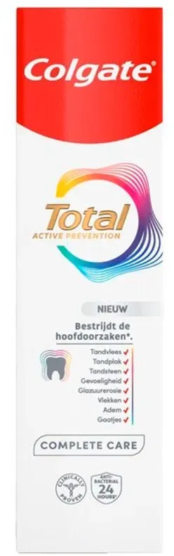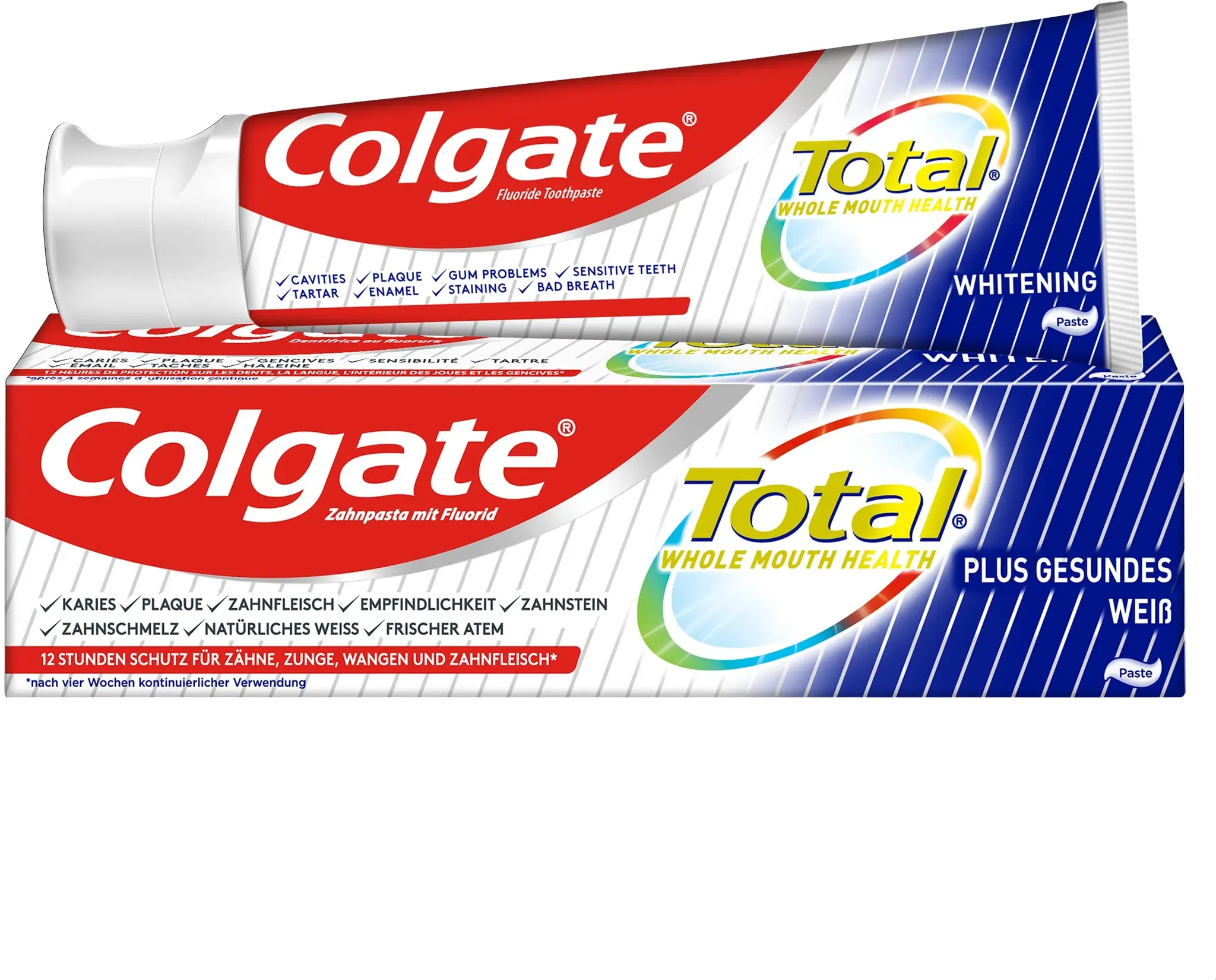 Kategorie: Zahnpflegeartikel - Colgate - GTIN:8718951391635 - Colgate Total bildet eine Schutzschicht, die Bakterien für bis zu 24 Stunden bekämpft Geeigneter Schutz von Zähnen, Zunge, Wangen und Zahnfleisch mit der Colgate Total Zahnpasta Der beste Weg, um Ihren Mund zu schützen, ist mit Colgate Total, entdecken Sie noch heute Die Suche nach einem gesunden Mund endet hier mit dem passenden Schutz von Colgate Total Erleben Sie seine Frische mit dem praktischen Format aus 2 Röhren - 7,68 Euro bei Amazon Marketplace Beauty - gefunden von billiger.de Dieses 3er-Pack der Colgate Total Active Prevention Whitening Zahnpasta ist eine gute Wahl für alle, die weiÃ?ere Zähne und umfassenden Schutz wünschen. ![]() ![]() Colgate Total Active Prevention Whitening bleichende Zahnpasta 3x75 ml