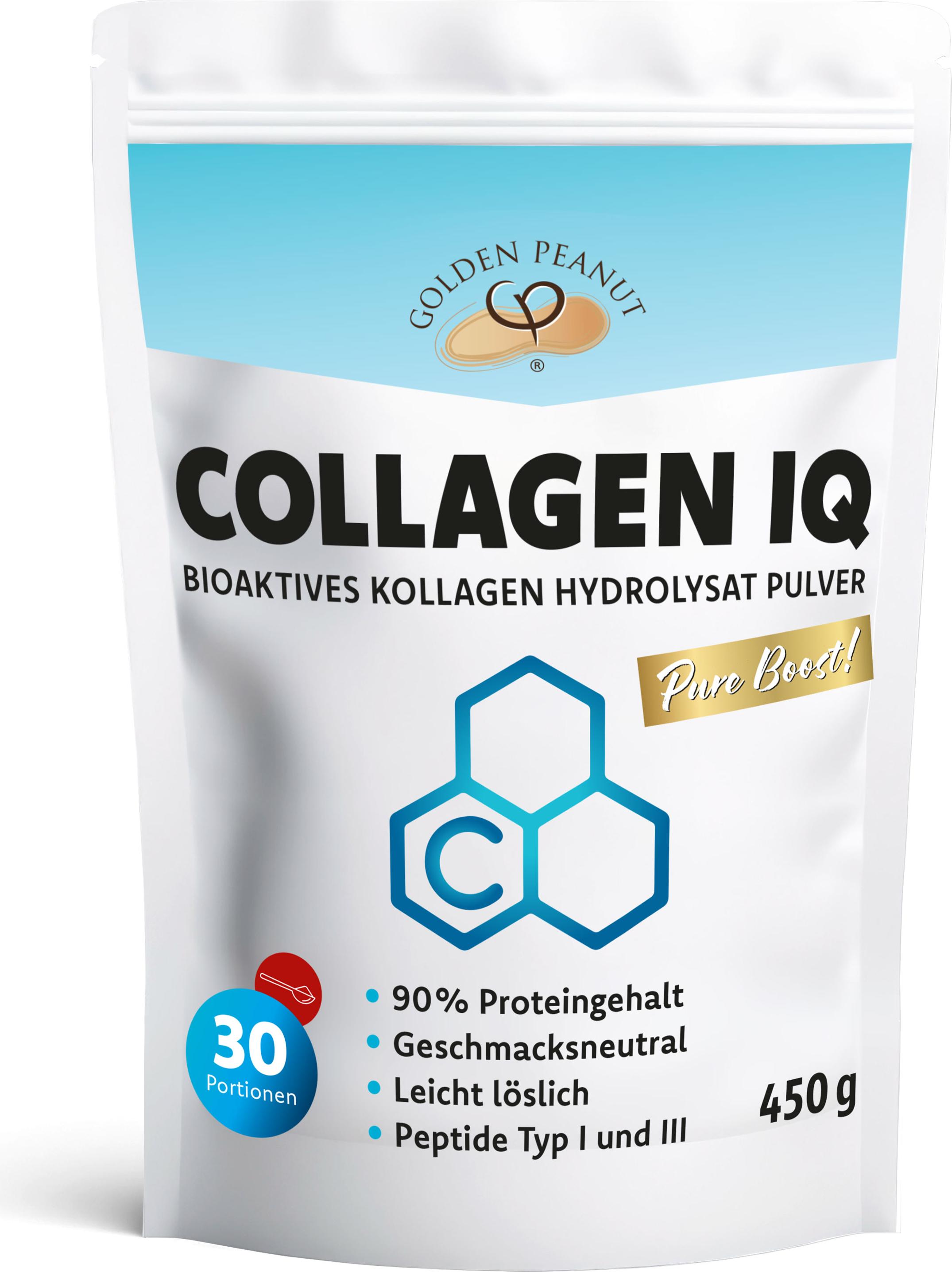 EAN: 4250573308751 - NATüRLICH. PUR. VIELSEITIG: Collagen IQ enthält ausschließlich bioaktive Kollagenpeptide vom Typ I & III ohne Zusätze, Aromen, Farb- oder Konservierungsstoffe, zuckerfrei, fettfrei und ohne Kohlenhydrate. Der hohe Proteingehalt mit über 90 % ist optimal zur Anreicherung deiner Mahlzeiten mit hochwertigem, leicht verdaulichem Eiweiß. GESCHMACKSNEUTRAL: Dank innovativer Verarbeitung nahezu frei von unangenehmem Eigengeschmack ideal für die tägliche Anwendung in Speisen und Getränken. EXZELLENTE LöSLICHKEIT: Durch Agglomerationstechnologie löst sich das Pulver klumpenfrei in heißen und kalten Flüssigkeiten perfekt für Shakes, Tee, Kaffee oder Joghurt. Jede Charge ist unabhängig laborgeprüft. - bei kaufland.de - aus Yadore Produktdaten ![]() ![]() GOLDEN PEANUT Collagen IQ 450 g Kollagen Pulver Hydrolysat Peptide Pure Boost Proteinpulver bioaktiv staubfrei top löslich und geschmacksneutral