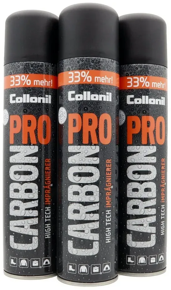 Kategorie: Schuhpflege - Collonil - GTIN:4002092050969 - Das Carbon Pro Imprägnierspray ist der König unter den Hochleistungs-Imprägnierern und der absolute und unangefochtene Topseller. Eine revolutionäre Technologie, die Sie in eine neue ära der Schuhpflege eintauchen lässt. Die innovative Technologie ermöglicht eine nahezu unbegrenzte Imprägnierung aller Materialien und atmungsaktiven Membranen wie Gore-Tex oder Sympatex. Es wirkt als sprühbare Membran mit extremem Abperleffekt und bietet langanhaltenden Schutz vor eindringender Nässe, extremer Nässe und Schmutz. Carbon Pro eignet sich für Schuhe, Funktionsjacken, Handtaschen, Rucksäcke und vieles mehr, bei regelmäßiger Anwendung verlängert das Spray die Lebensdauer jedes behandelten Produkts deutlich. Hergestellt in Deutschland. - 31,94 Euro bei Amazon Marketplace Beauty - gefunden von billiger.de Dieses 3er-Pack mit 3x 400ml Flaschen ist ideal für Vielnutzer und bietet einen attraktiven Mengenrabatt. ![]() ![]() (29,16 EUR/l) - 3x Collonil eBay Carbon Pro Imprägnierspray 400ml g Nässe & Schmutz