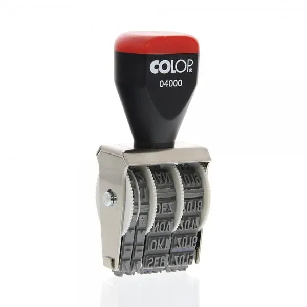 Zustand: Gebraucht - Stempel - Colop COLOP - 108791 - EAN: 9004362343578 - Ausführung: für Stempelkissen Text: 12 Texte Schriftgröße Datum: 4 mm - 1 Händler im amazon.de Marketplace Dieser Wortband-Datumstempel ist mit 11,30 Euro eine gute Wahl für vielseitige Anwendungen mit vordefinierten Wörtern. ![]() ![]() Colop 04000 WD Wortband-Datumstempel, Datum deutsch, Wortband beinhaltet Wörter wie Eingang, Erledigt, Bezahlt, Gebucht, etc.