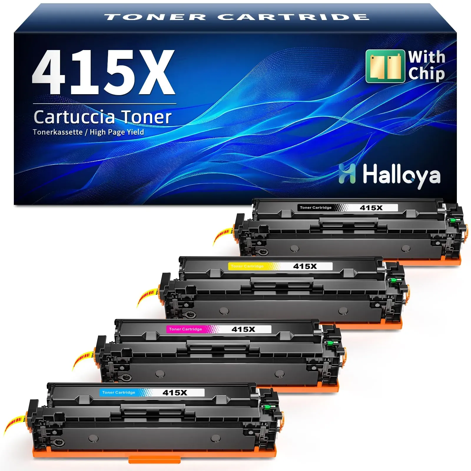 Kategorie: Toner - GPC Image - GTIN:6976931160219 - über dieses Produkt: GPC IMAGE 415A Tonerkartuschen-Kit mit Chip gewährleistet eine hohe Druckqualität ohne übertragung des OEM 415A 415X-Chips. (Nicht-Original) Seitenleistung: Tonerkartusche 415A W2030A schwarz druckt 2.400 Seiten bei 5% Deckung, Farbkartusche 415A W2031A W2032A W2033A (magenta-gelb-cyan) druckt 2.100 Seiten bei 5% Deckung Lieferumfang: 4 x 415A Tonerkartuschen (mit Chip), kompatibel zu HP 415A 415X (W2030A W2031A W2032A W2033A) M479fdw Toner, und ein Benutzerhandbuch Kompatible Drucker: Color LaserJet Pro MFP M479 M479dw M479fdn M479fdw, Color LaserJet M454 M454dn M454dw Bitte überprüfen Sie Ihr Druckermodell vor dem Kauf Paketinhalt: 1 x Schwarz 415A W2030A, 1 x Cyan 415A W2031A, 1 x Gelb 415A W2032A, 1 x Magenta 415A W2033A Toner. Druckt in naturgetreuen Farben und liefert saubere, streifenfreie Dokumente und Bilder - 79,99 Euro bei Amazon Marketplace Automotive - gefunden von billiger.de Ein 4er-Pack mit Chip, das eine gute Abdeckung für alle Farbbedürfnisse bietet. ![]() ![]() Halloya 415X Toner Mit Chip Kompatibel für HP 415A 415X für Color Laserjet Pro MFP M479fdw M479dw M479fdn M479fnw M454dw M479 W2030X W2031X W2032X W2033X (Schwarz Cyan Gelb Magenta, 4er-Pack)