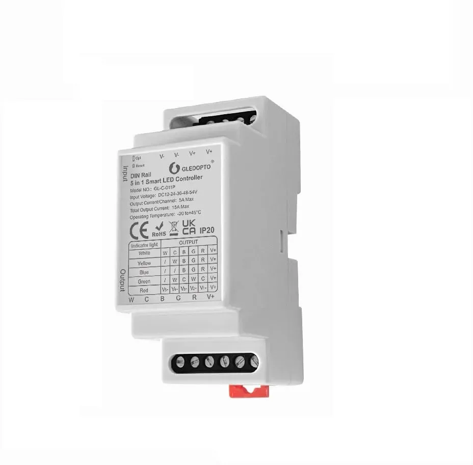 Auf Lager Versand durch AmazonGLEDOPTO Zigbee Controller DC12-54V DIN Schiene 5 in 1 RGBCCT/RGBW/RGB/WWCW CCT/Dimmer LED Streifen Controller Alexa Tuya Conbee Zigbee2mqtt