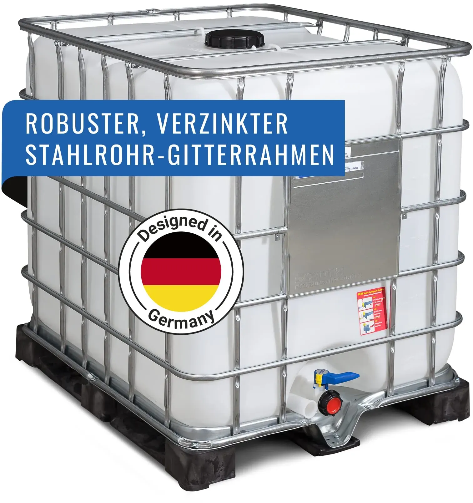 Verfügbarkeit: lieferbar in 8 Wochen - Kategorie: Büroschränke - Faizee Möbel - GTIN:5420070201971 - Farbe Farbe , Weiß, - 436,50 Euro bei OTTO - gefunden von billiger.de Dieser DENIOS IBC Container ist eine hochwertige und sichere Lösung für die Lagerung von Flüssigkeiten, inklusive Stahlrahmenpalette. ![]() ![]() DENIOS® IBC Container 1000L - Neuware Premium mit extra PE Palette - Behälter, Wassertank, Container Regentonne Regenwassertank mit Stahlrahmenpalette