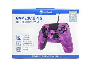 Kategorie: Gaming-Zubehör - Lapalife - GTIN:8721417209580 - ?KOMPATIBILITäT?Dieser kabellose Gamecontroller ist kompatibel mit PS4 / PS4 Pro / PS4 Slim und PC (Windows 7/8/8.1/10). Er bietet ein mitreißendes und authentisches Spielerlebnis. Dank der optimierten doppelten Analog-Sticks und Trigger-Tasten bietet der Controller auf allen unterstützten Plattformen ein präzises und reaktionsschnelles Gefühl. Es handelt sich um ein hervorragendes Ersatz-Zubehör für den originalen PS4-Controller. Hinweis: Für die erste Kopplung muss das Gerät über das mitgelieferte USB-Kabel aktiviert werden.?Optimierte Steuerung & Hohe Empfindlichkeit?Unser kabelloser PS4-Controller verfügt über einen 6-Achsen-Sensor und duale Rumble-Funktion für ein realistischeres Spielgefühl. Die Tasten und doppelten Analog-Joysticks sind mit exzellentem Design optimiert. Das ergonomische Modell weist eine hohe Empfindlichkeit auf, was die Reaktionszeit verkürzt und die Präzision in entscheidenden Momenten verbessert.?Touchpad & Stream-Funktion?Eines der auffälligsten Merkmale ist das zentrale Multi-Touch-Touchpad, das Ihre Spielmöglichkeiten erweitert. Zudem besitzt der Controller eine Teilen-Taste (Share-Taste), mit der Sie Ihr Gameplay live streamen können, ohne die Sitzung zu unterbrechen. Dies ist ein Drittanbieter-Controller und kein offizielles Sony-Produkt.?Audio-Funktion?Der Controller ist mit einem 3,5-mm-Audioanschluss ausgestattet, sodass Sie Ihre bevorzugten Kopfhörer anschließen und ungestört ... Der PS4 Controller Game:Pad 4S bubblegum camo kabel ist eine kabelgebundene Option, die eine stabile Verbindung und ein einzigartiges Design bietet. ![]() PS4 Controller Game:Pad 4S bubblegum camo kabel