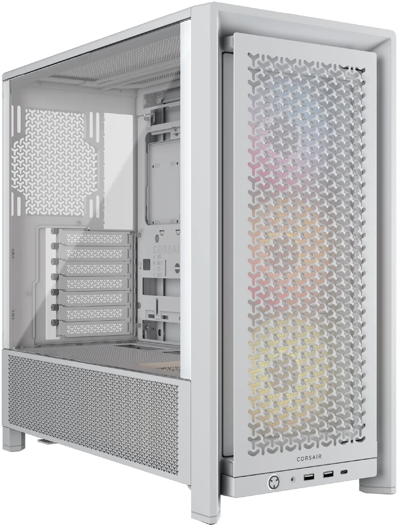 EAN: 0840440487722 - ATX Gaming Gehäuse mit Stahl-Frontabdeckung mit 3D-Y-Muster Panel Weiß, ARGB Beleuchtung Abmessungen (L B H): 490mm x 239mm x 486mm Einschübe (intern): 4x 2,5'/2x 3,5' HDD/SSD Kabelmanagement, Staubfilter, Sichtfenster aus Glas - bei cyberport.de - aus Yadore Produktdaten Dieses Angebot ist eine weitere günstige Option für das weiße Modell. ![]() CORSAIR Frame 4000D RS ARGB Weiß Midi Tower ATX Gaming Gehäuse