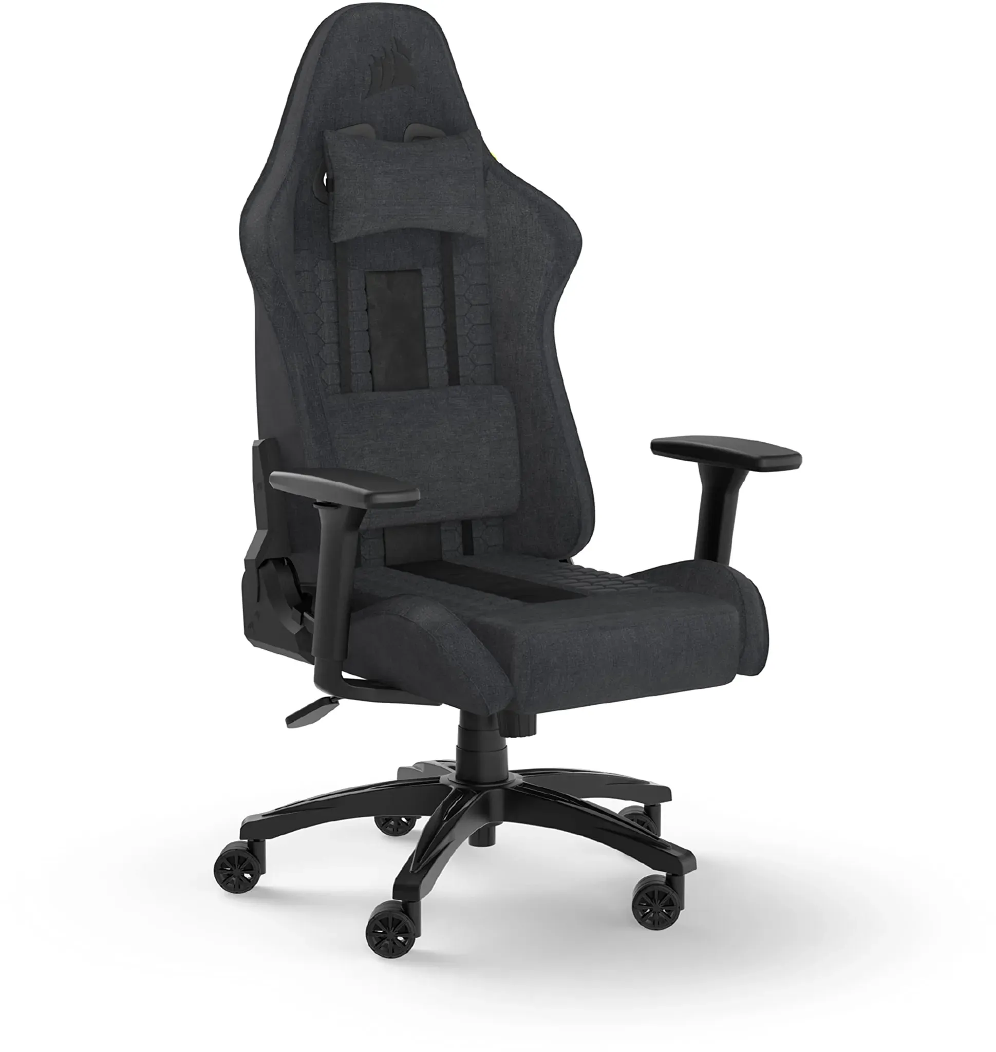 Corsair - EAN: 0840006694939 - Luxury executive / gamer chair, upholstered chair with fabric cover, with detachable pillow for lumbar and head, 2D armrest. Max weight of 120 kg. Backrest size 810mm (height) x 330mm (width), seat size 500mm x 540mm (depth x width). Color: gray - bei proshop.de - aus Yadore Produktdaten Dieser Gaming-Stuhl aus Stoff in Schwarz ist eine gute Wahl für Komfort und Stil. ![]() ![]() Corsair TC100 Relaxed Fabric Gaming Stuhl - Schwarz - Stoff - Bis zu 120 kg